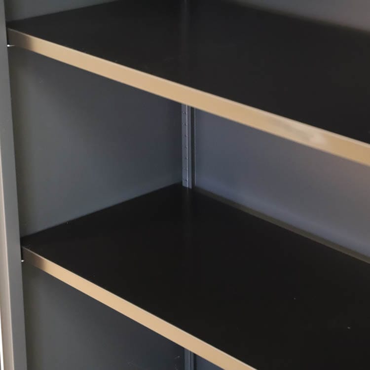 Skåpet kommer med ett centrallås för säker förvaring av dina dokument och hyllor som kan justeras i höjd.