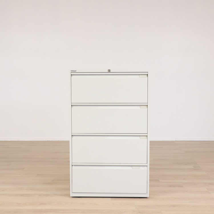 Arkivsskåp från Bisley i stilren design, perfekt för att organisera och arkivera på kontoret. Produkten är tillverkad av metall med fokus på detaljer här i ljusgrått utförande.