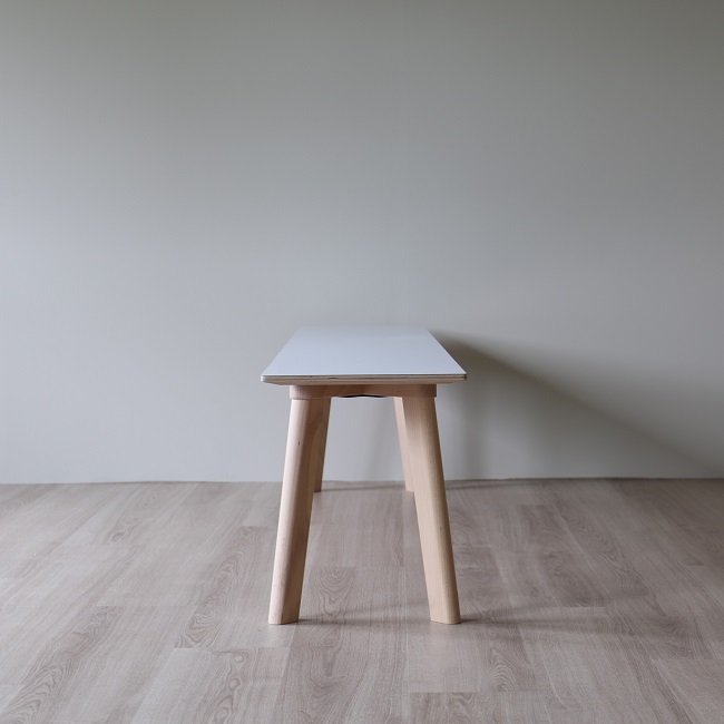 Bänken CPH DEUX 215 kommer från HAY och är en del av serien Copenhague som Ronan och Erwan Bouroullec designat. Bänken har många användningsområden och det är bara fantasin som sätter gränser egentligen. Vi skulle ställa den i entrémiljöer, väntrum eller som sittplats på ena långsidan av ett matbord. Skivan är tillverkad av laminat i färgen Pearl White och benen är av FSC-certifierad och obehandlad bok. Bänken är begagnad men i mycket fint skick.
