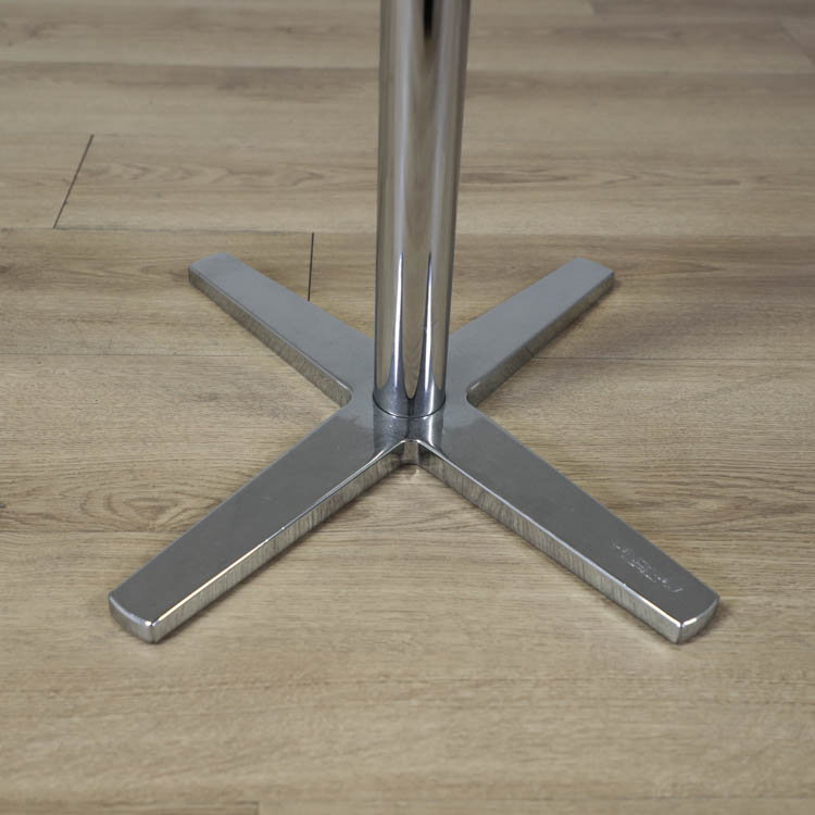 Barbordet Centrum från Materia kombinerar stilren design med funktionalitet, perfekt för både moderna kontorsmiljöer och hem. Med en höjd på 107 cm och en kompakt bordsskiva på 52,5 x 45 cm i vit finish erbjuder det en praktisk yta för stående arbete och snabba möten. De kromade benet tillför en modern estetik samtidigt som de ger stabilitet och hållbarhet. Detta barbord är en tidlös möbel som smälter in i olika interiörer med sin minimalistiska och eleganta formgivning.
