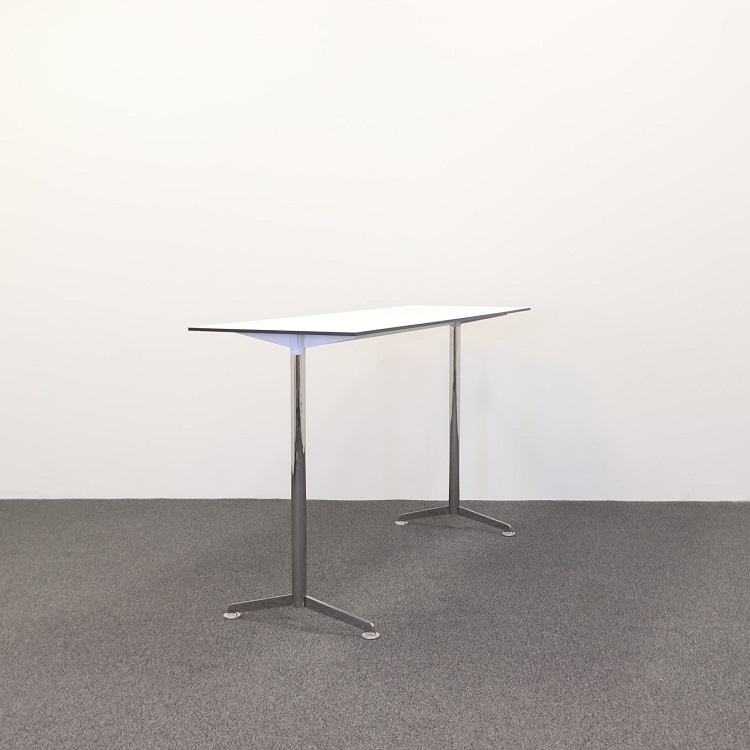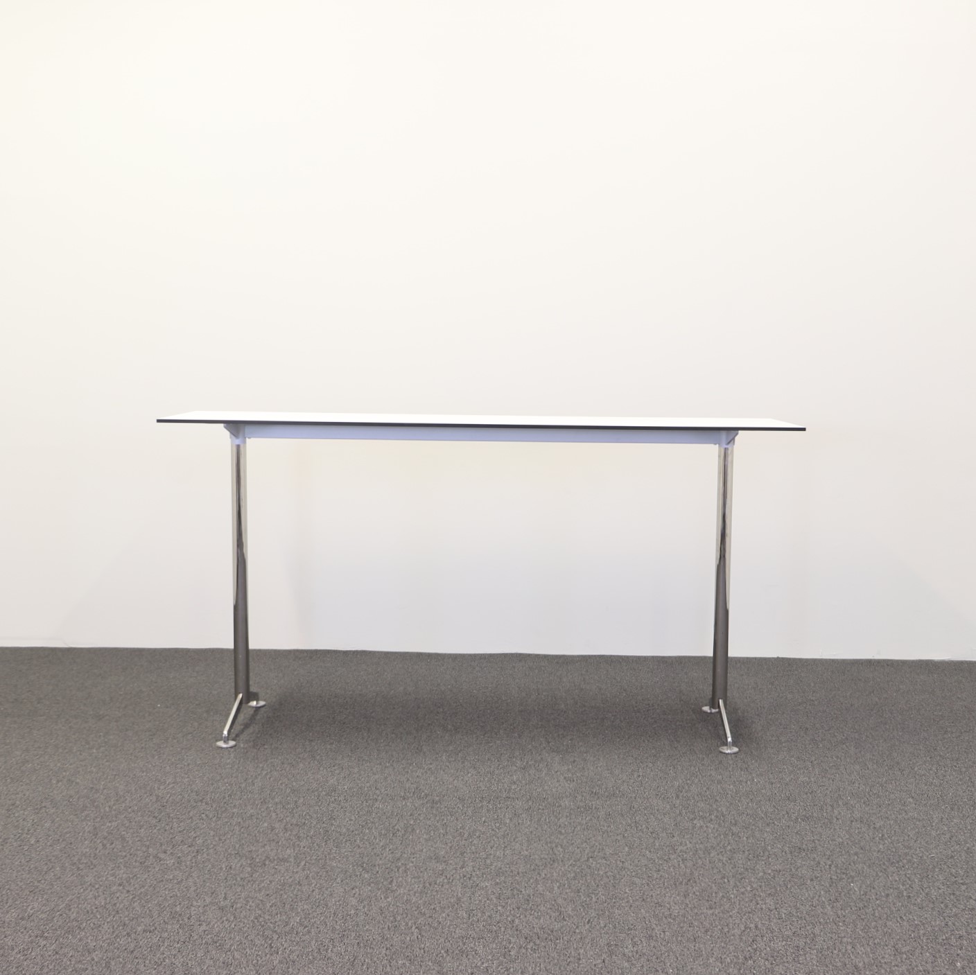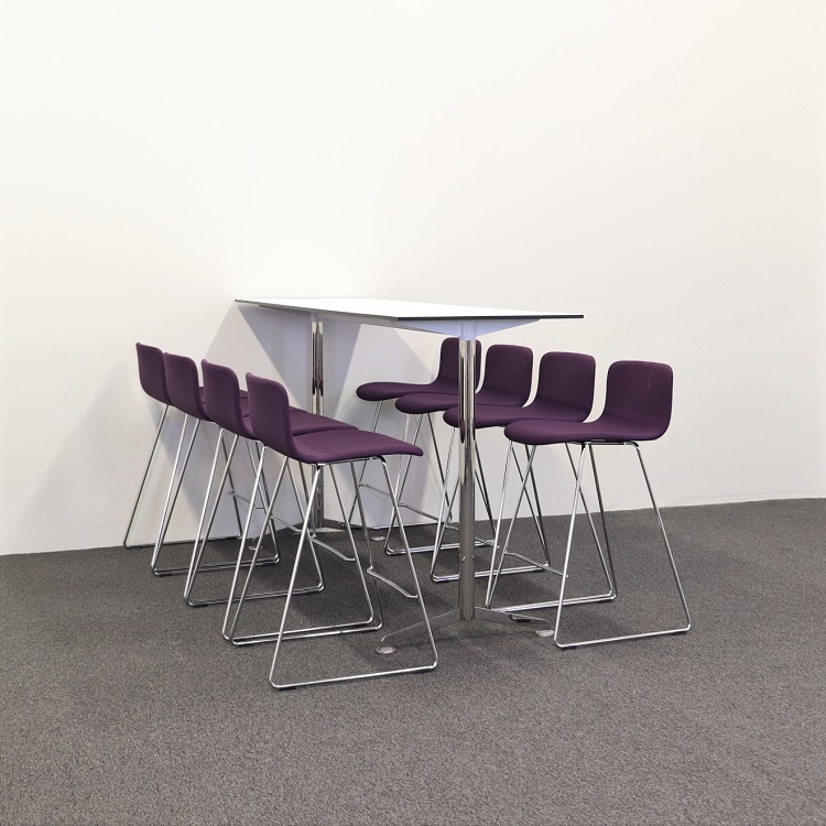 Barbordet Cooper High kommer från det välkända, svenska varumärket Lammhults och är formgivet av Gunilla Allard år 2004. Med en stilfull och trendsäker design som med fördel kombineras i olika typer av utrymmen, färger och inredningsstilar. Bordet har vit bordsskiva med svart kantlist samt kromat stativ. Stativfoten har inbyggda möbeltassar för att minimera slitage mot golvytan. Barbordets höjd kombineras allra bäst till stolar med ca 75 cm sitthöjd.