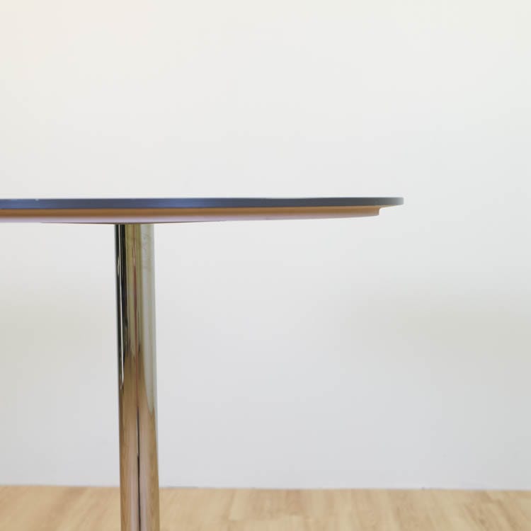 Stilfullt bord från Fora Form, designat av Torsteinsen Design. Bordet Next har träskiva i laminat, fasad kant och grå kantlist i plast med avrundade hörn. Underrede i rostfritt stål och glidfötter i plast som är justerbara.