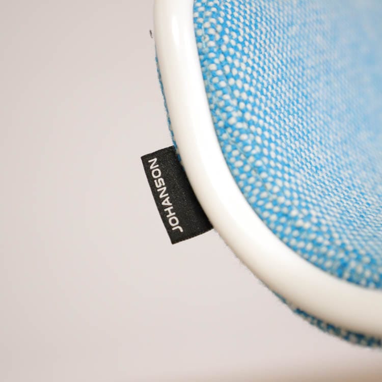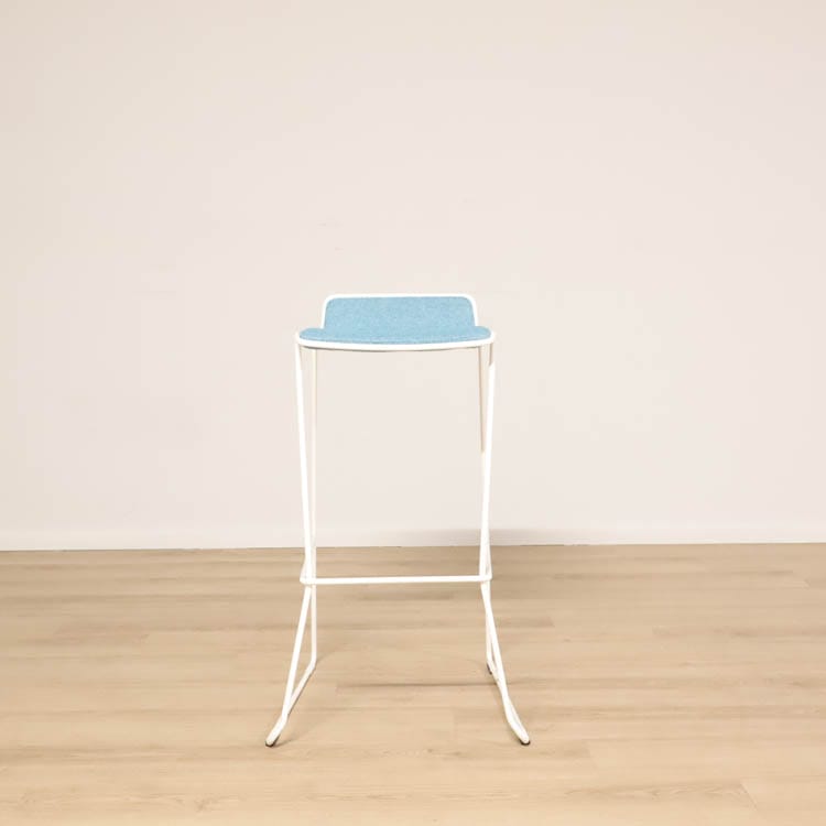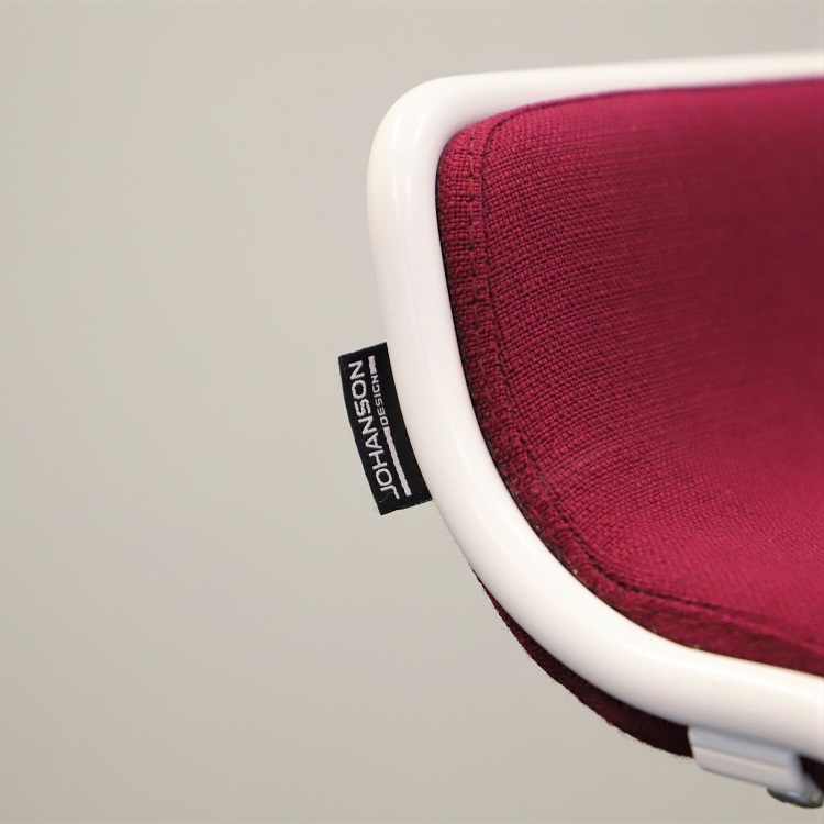 Barpallen Speed i modellen BS 80 med klädsel i färgsprakande kulörer och vitlackerade medar från Johanson Design, designad av Johan Lindstén.