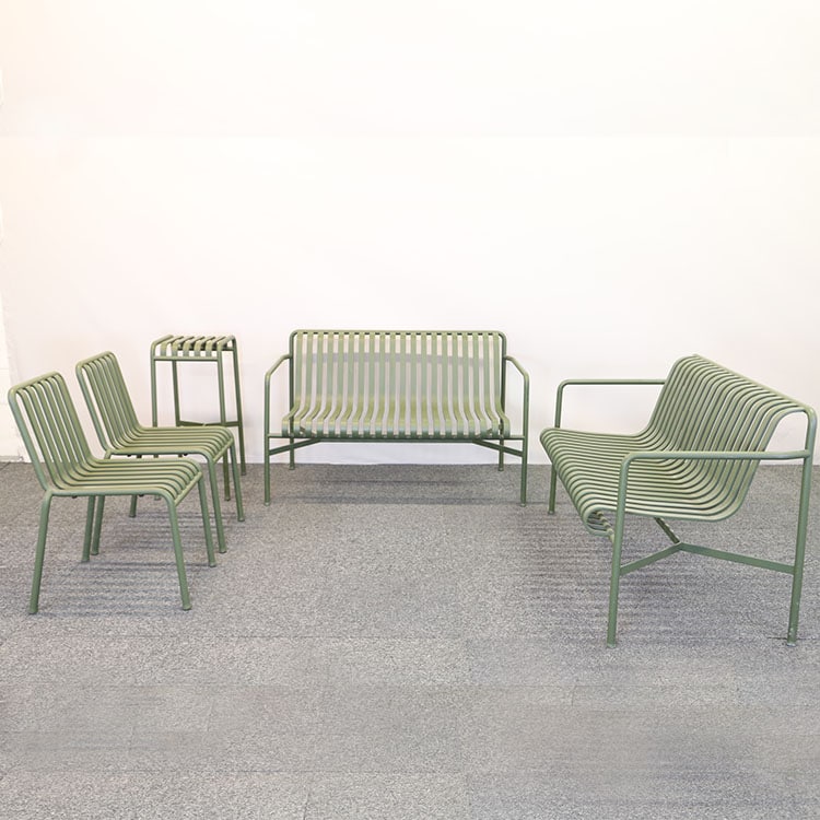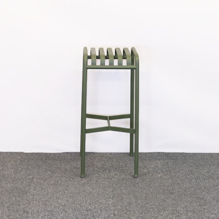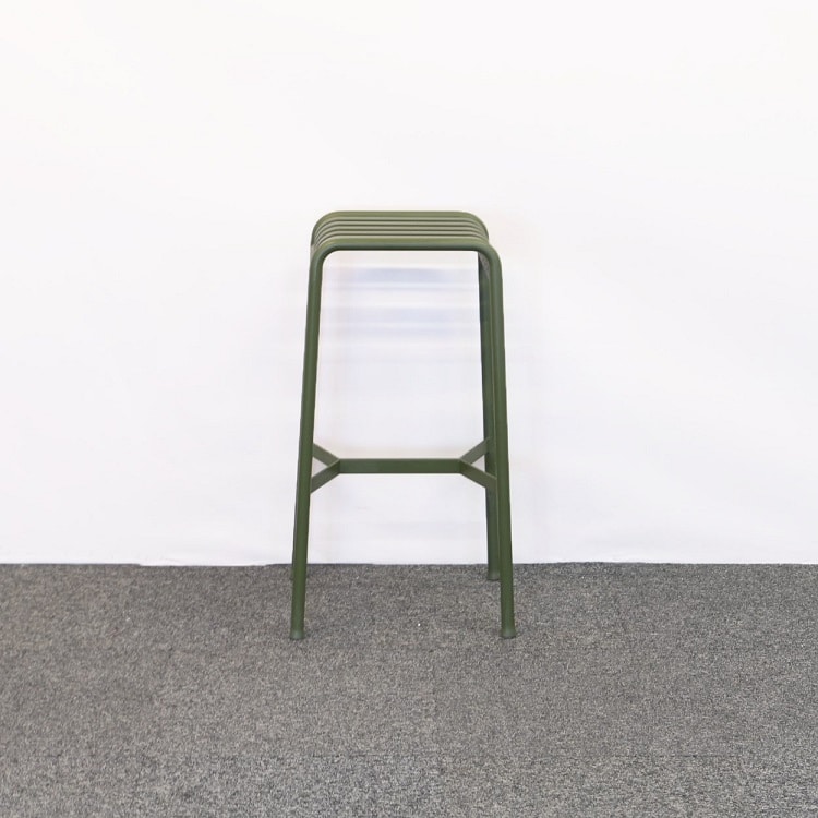 Palissade är en hel serie med utomhusmöbler som är designad för att passa in i de flesta miljöer. Möblerna är formgivna av Ronan och Erwan Bouroullec för Hay. Denna barpall är både hållbar och elegant i en fin olivgrön färg. Tillverkad i pulverlackat stål.