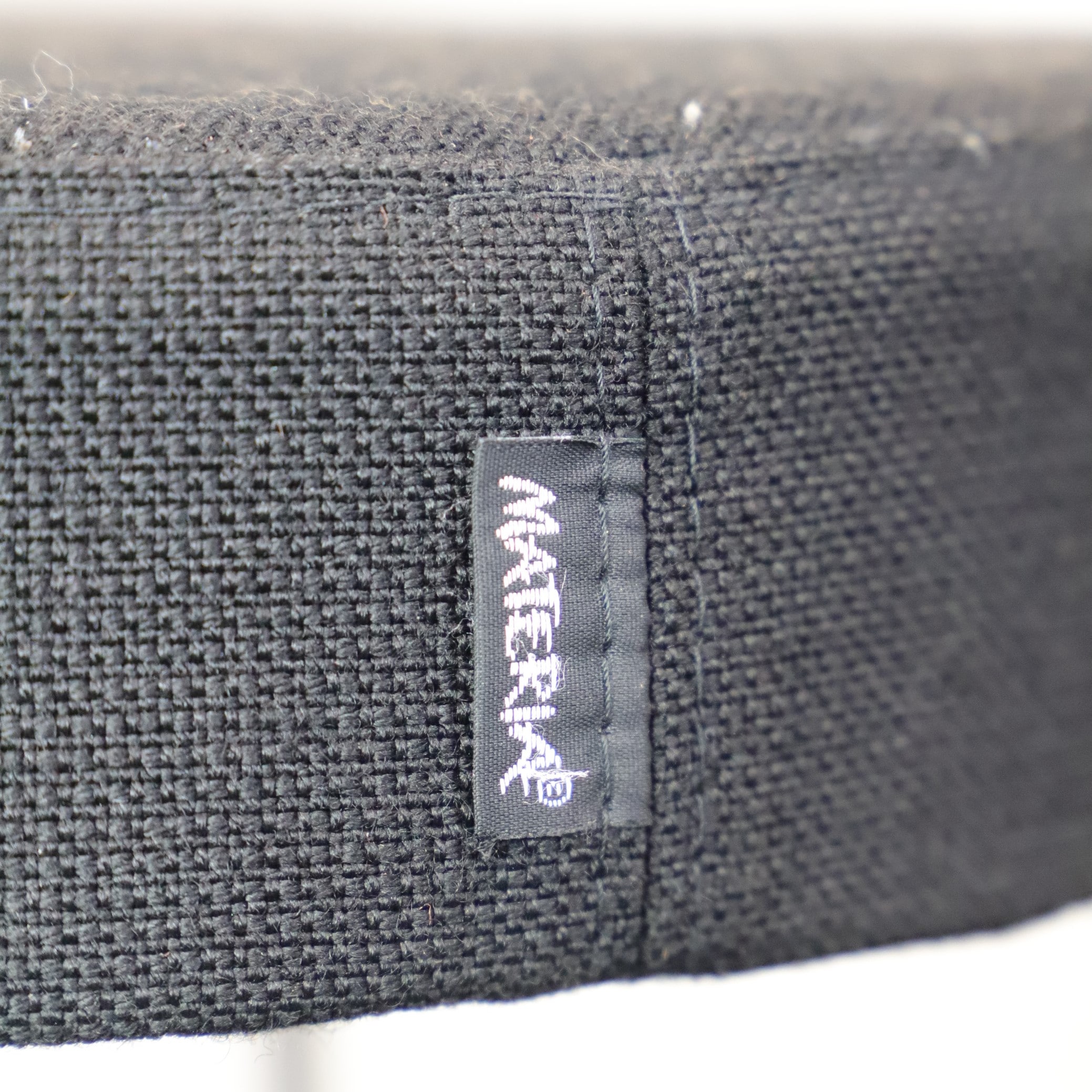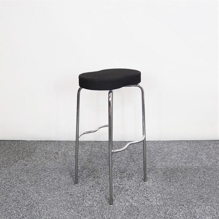 Barstolen Bönan från Materia har en lekfull och kroppsrelaterad design. Sitsen är stoppad och har en form som ska ge hög komfort. Designen gör den också obegränsad att användas från alla håll. Benen är i förkromat stål och det finns även fotstöd. Svart klädsel