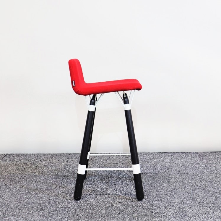 Serien Nest designat av Alexander Lervik har hämtat sin inspiration från 60-talet men har ett modernt uttryckt. Det unika sättet att fästa samman underredet gör att barstolen får ett unikt uttryck som livar upp i de flesta miljöer. Ben i svartbetsad ek i härlig kontrast mot den färgstarka röda sitsen.