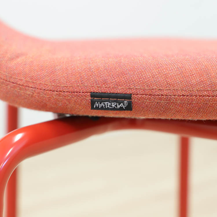 Denna kommer i en alert kulör av röd, både i tyget på sittdelen och dom pulverlackerade stålbenen.