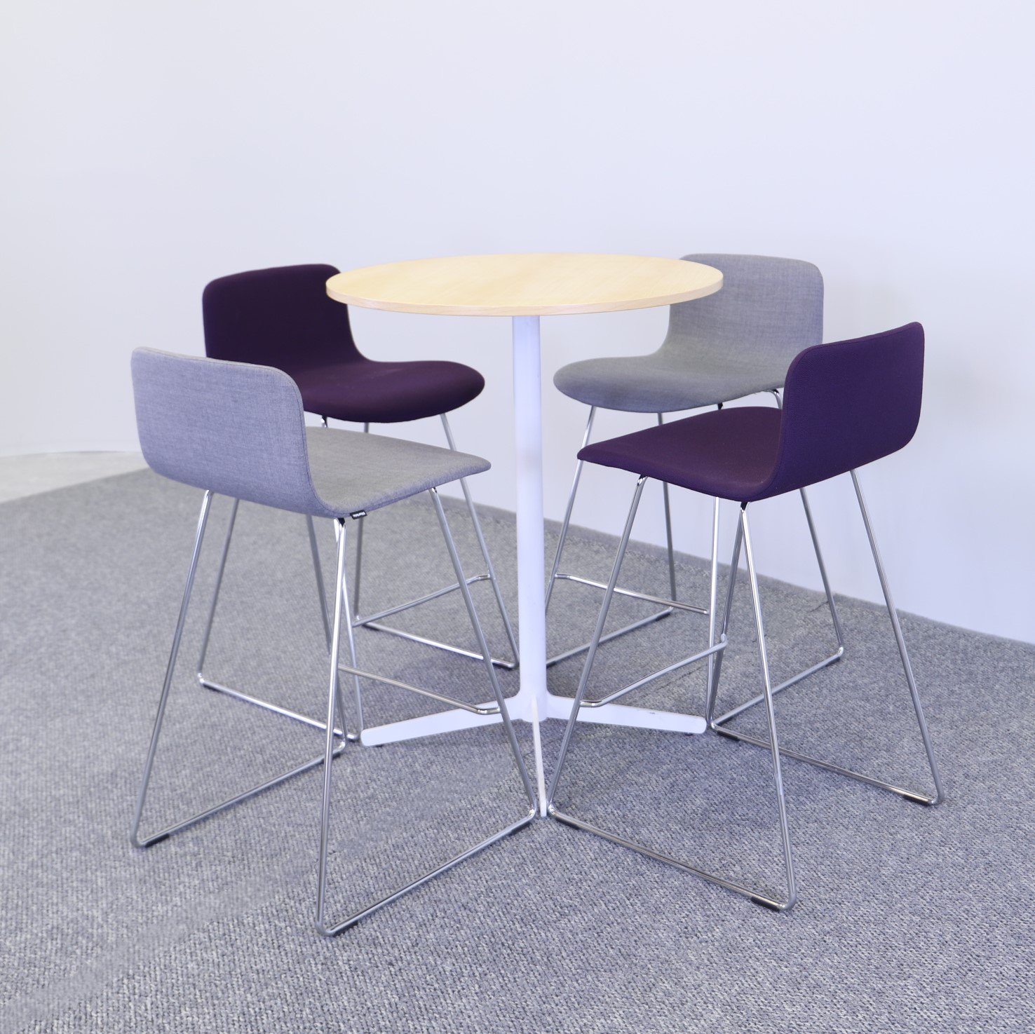 Barpallen Sola kommer från Martela och finns i tre härliga färger som går utmärkt att kombinera med varandra eller med andra möbler. Utrustad med ryggstöd och fotstöd för ökad komfort. Nätta medar i kromad finish och helklädd sits och rygg i lila, grå eller indigo kulör. Dessa barpallar passar perfekt för att pigga upp ett rum eller på ett snyggt sätt matcha den befintliga inredningen. Sola är stapelbar och passar barbord som har en höjd på ca 90-95 cm.