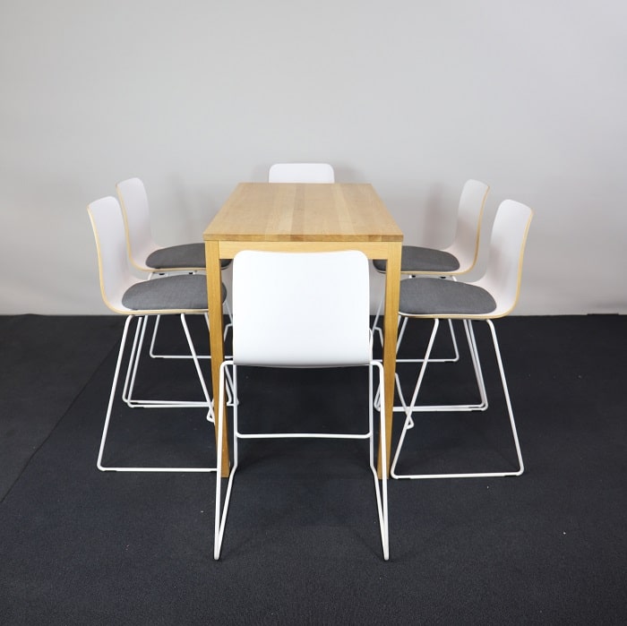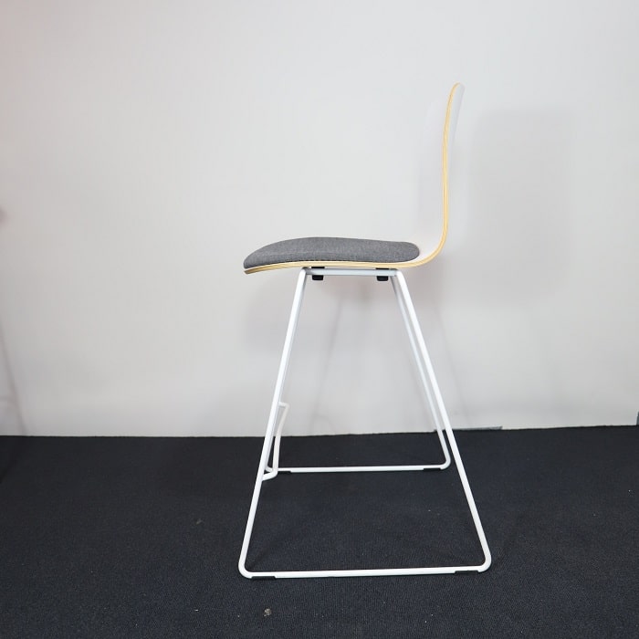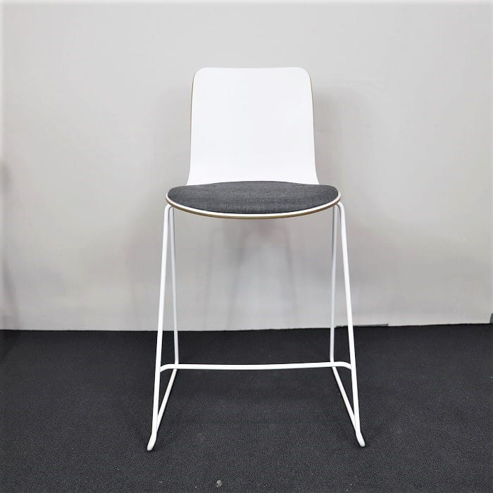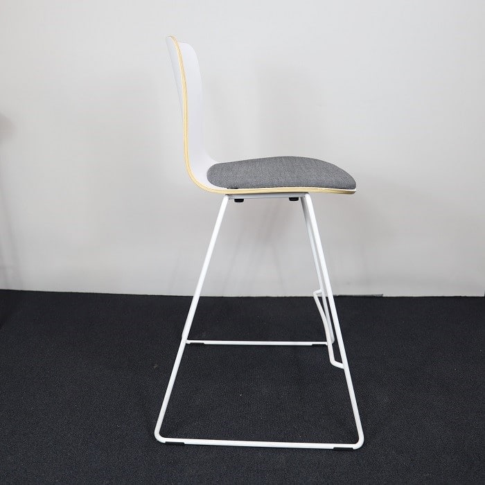 Matela har skapat en enkel, men stilig barstol på ben designade som en ram. Sitsen är vit och har en grå dyna för högre bekvämlighet. Passar i flera olika miljöer som personalrum och konferensrum.