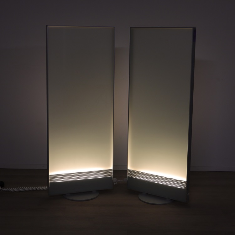 Den belysta golvskärmen är en unik produkt som är den perfekta kombinationen mellan avskärmning och en behaglig golvlampa! Med detta golvskärmar kan du enkelt få en diskret uppdelning av rummet utan att tumma på ljusmiljön. Golvskärmen är flexibel tack vare dess sladd och kan därför placeras i såväl receptionen som i kontorslandskapet eller mötesrummet.