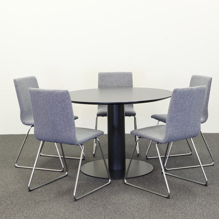 Gubi presenterar ett modernt matbord i industriell stil med svart bordsskiva samt fot i svartlackerad metall. Gubi är ett välkänt danskt designhus som grundades år 1967 vars möbler präglas av ett elegant och vågat uttryck. Detta bord passar utmärkt i hemmet, loungen och i den moderna restaurangen. Det runda svarta bordet skapar ett djup i rummet och går att matcha med dessa svarta stolar för den industriella stilen eller dessa i trä för en mer rustik inredning.