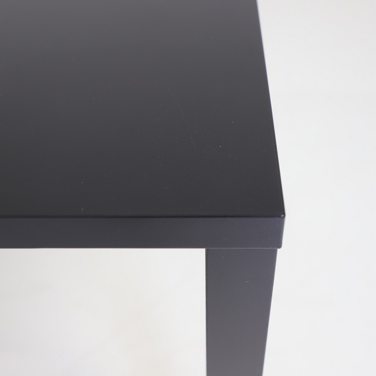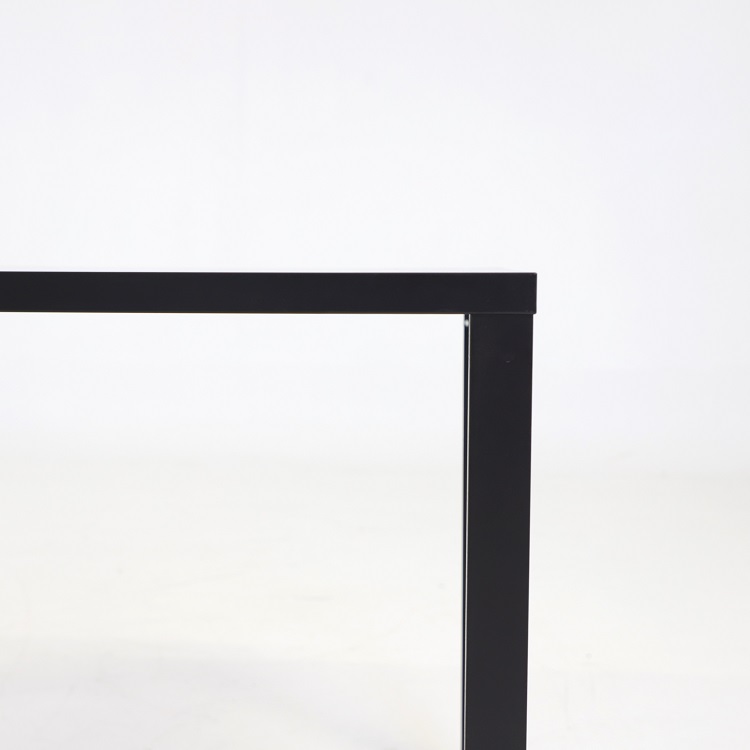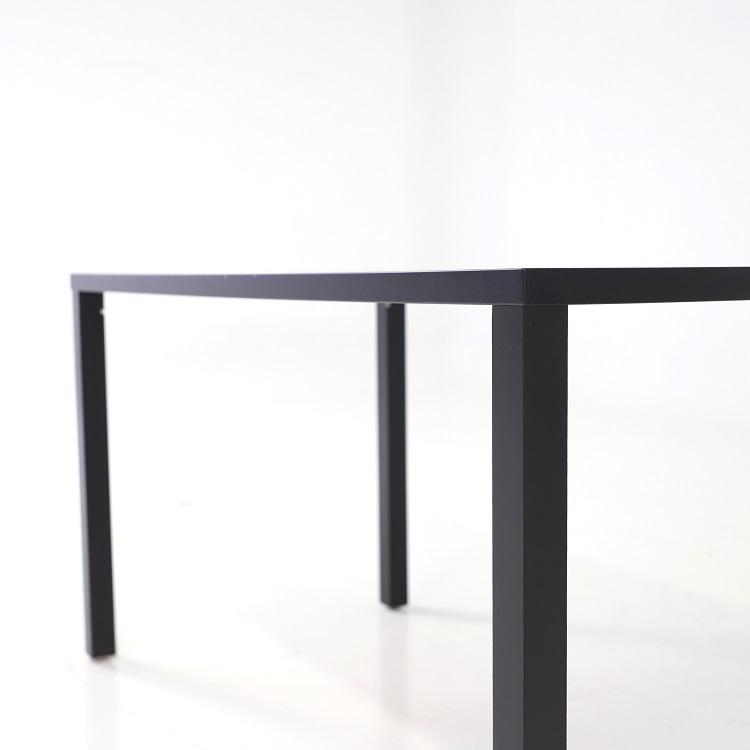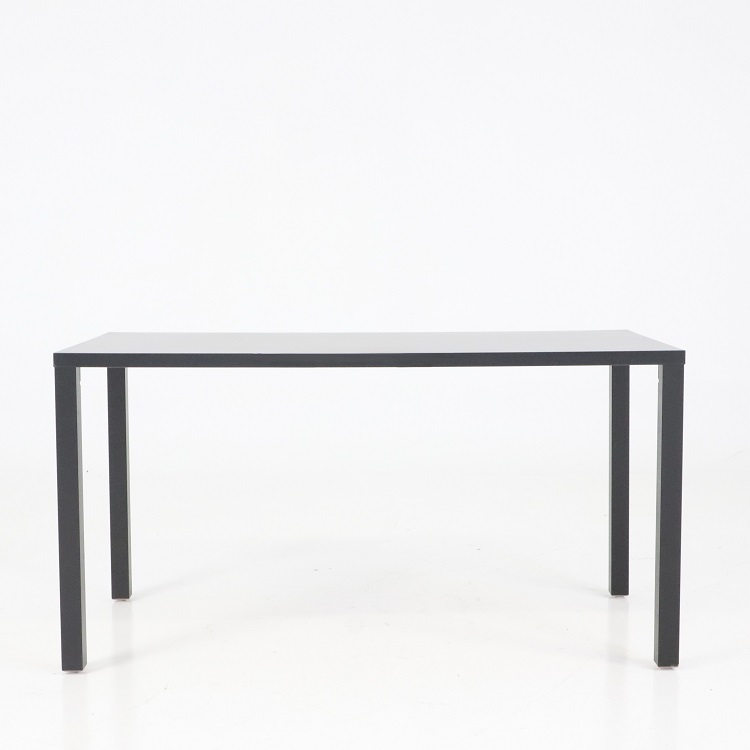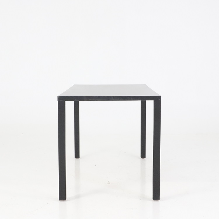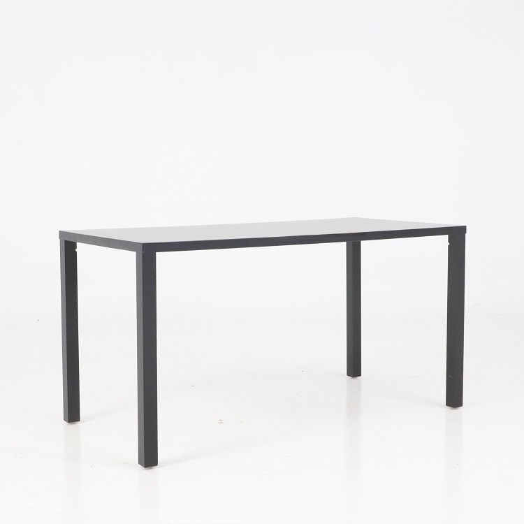 Den svarta matta ytan bidrar till ett enhetligt uttryck och bordets raka linjer gör det enkelt att kombinera med olika typer av stolar. Konstruktionen erbjuder gott om benutrymme och möjliggör smidig möblering i både små och stora rum.