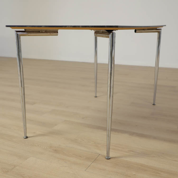 Bordet Campus kommer från Lammhults och passar perfekt för både spännande samtal under lunchrasten, trevliga middagar hemma eller varför inte som mötesbord för era kreativa möten? Den vita bordsskivan i kombination med den diskreta vinkeln på det kromade bordsbenet i stål ger bordet en unik och snygg detalj utan att frångå den stilrena designen. Måttet 70×70 samt 120×70 har svart kant på bordsskivan.