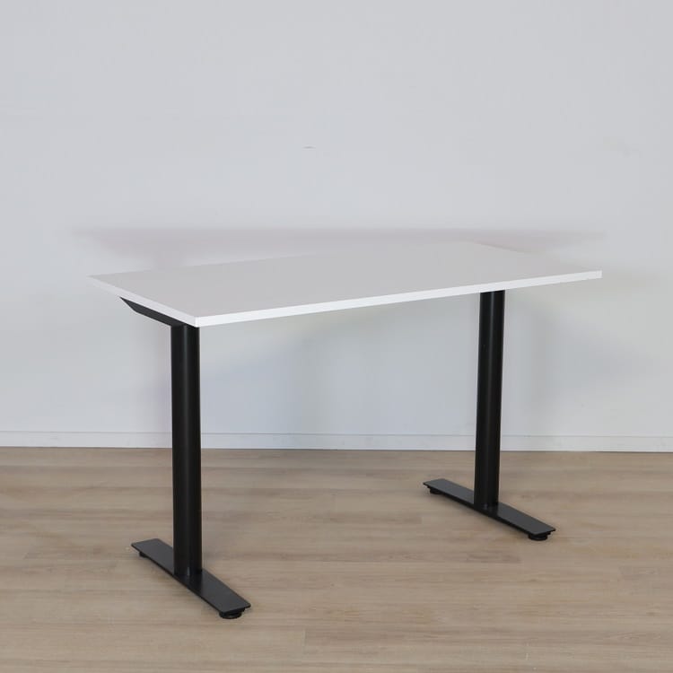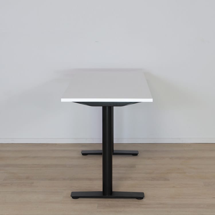 Oberon från Kinnarps är ett stilrent bord med skandinaviskt formspråk och tillhör den mångsidiga och hållbara serien av bord. Skrivbordet har en tålig och kvalitativ skiva av laminat i vitt utförande med väldesignade runda pelare med t-ben som ger bordet dess höga stabilitet.