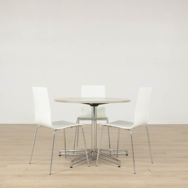 Med en höjd på 72 cm och en diameter på 90 cm erbjuder detta bord en idealisk balans mellan kompakthet och rymlighet. Det passar lika bra som ett cafébord i offentliga miljöer som ett stilrent tillskott i hemmet.