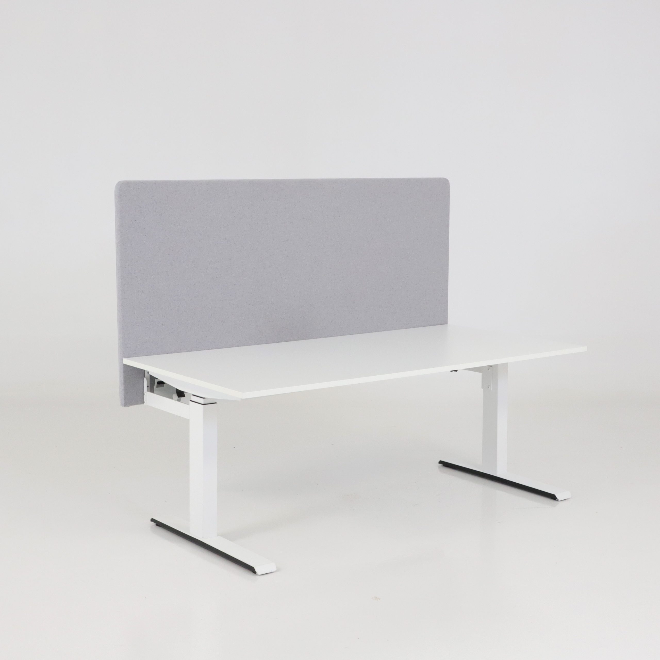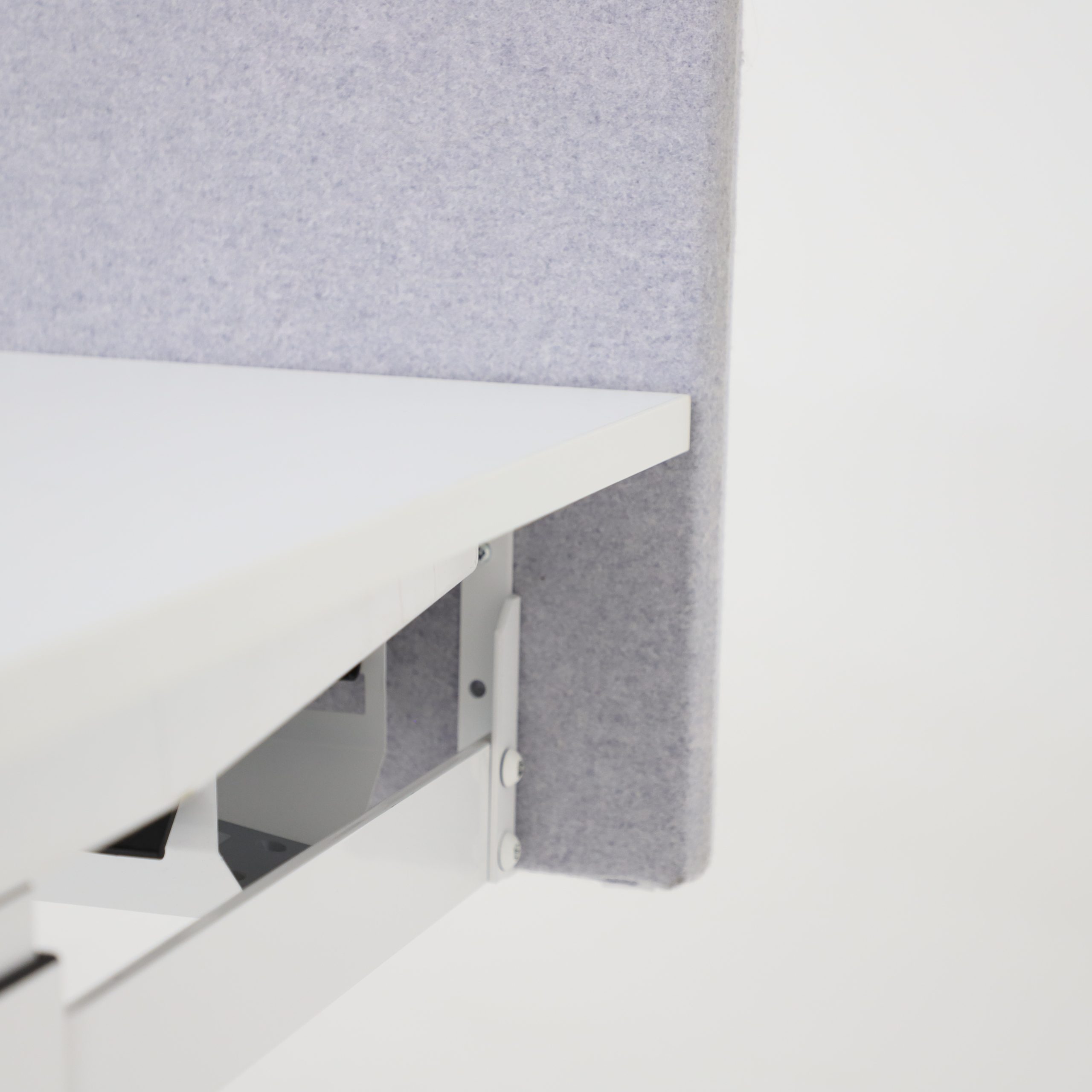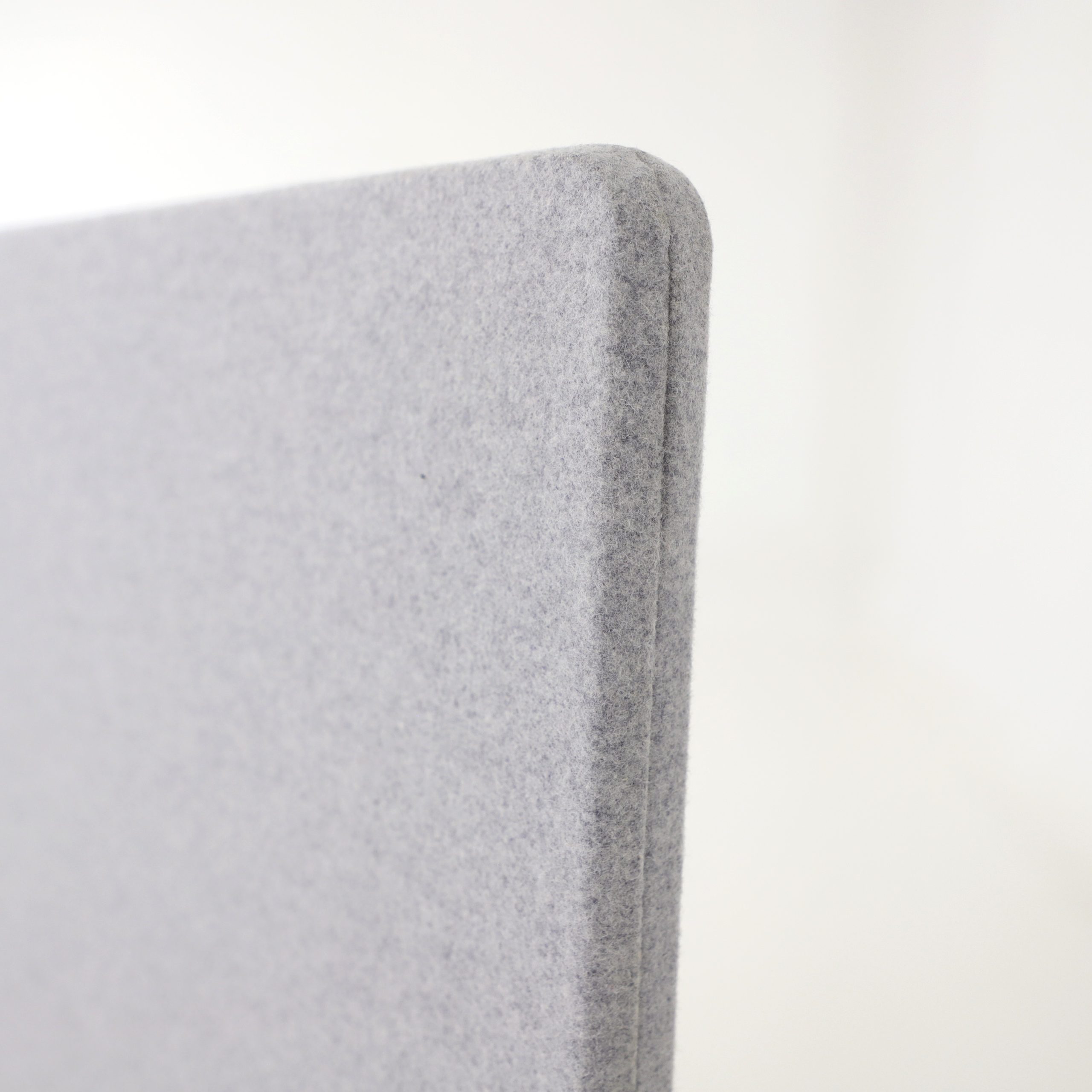 Skärmen är klädd i en mycket en hållbar textil i en elegant ljusgrå ton, förutom att skärma av och dämpa ljud så kan skärmen även användas som din personliga anslagstavla.