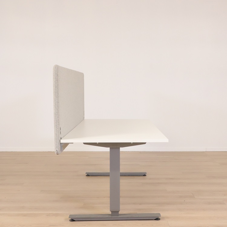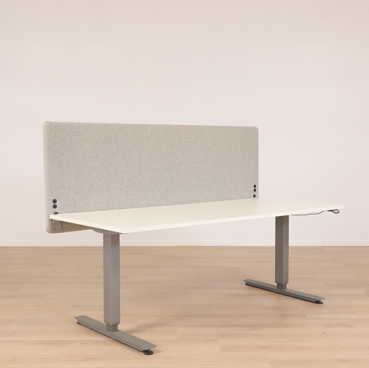 Bordsskärm i storlek 180 cm från Götessons i en mjuk, grå kulör och rundade hörn som ger bordsskärmen sitt mjuka och följsamma uttryck. En bordsskärm absorberar ljud samt skyddar mot insyn, detta minskar ljudnivån och är även avskärmande från omvärlden. Detta ökar koncentrationsförmågan och arbetsklimatet, perfekt för att optimera effektiviteten på arbetsplatsen.
