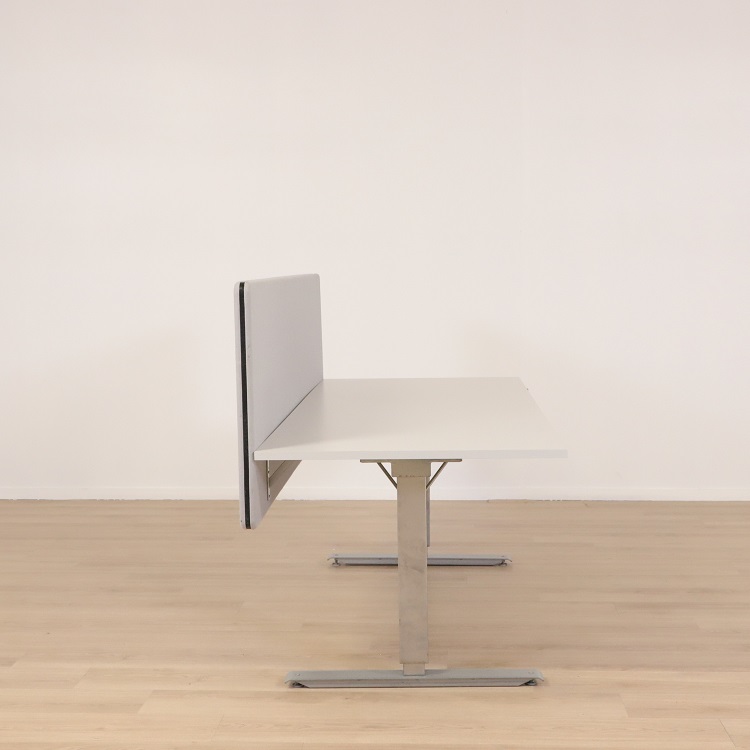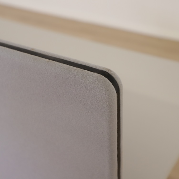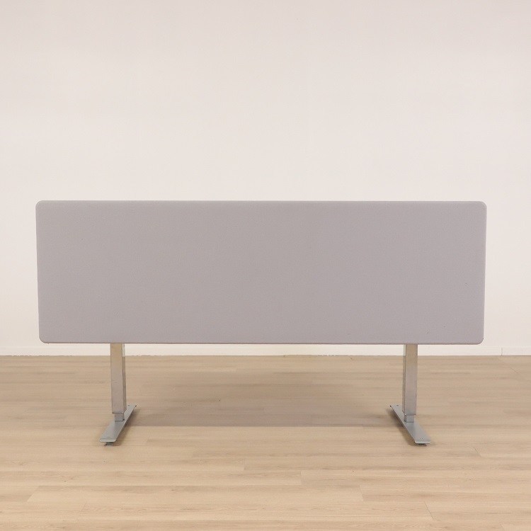 En stilren, klassisk bordsskärm i grått utförande med en distinkt svart kant som med sina raka linjer och rundade hörn är såväl tidlös som funktionell. Bordsskärmarna är visuellt avskiljande samt dämpar ljud, vilket optimerar arbetsklimatet och koncentrationsförmågan hos medarbetarna. Arbetar man i ett större kontorslandskap kan det vara mycket fördelaktigt med en bordsskärm vid sitt skrivbord för att enklare kunna arbeta ostört och koncentrerat.