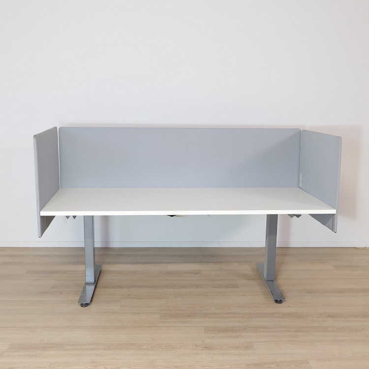 En stilren, klassisk bordsskärm i grått tyg. Bordsskärmarna är visuellt avskiljande samt dämpar ljud, vilket optimerar arbetsklimatet och koncentrationsförmågan hos medarbetarna. Arbetar man i ett större kontorslandskap kan det vara mycket fördelaktigt med en bordsskärm vid sitt skrivbord för att enklare kunna arbeta ostört och koncentrerat.