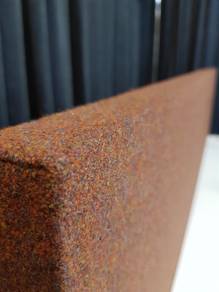 Mycket snygg skärmvägg klädd i slitstarkt brunt tyg. Praktisk produkt som skiljer av arbetsplatser och fungerar ljuddämpande. Finns i tre olika nyanser.