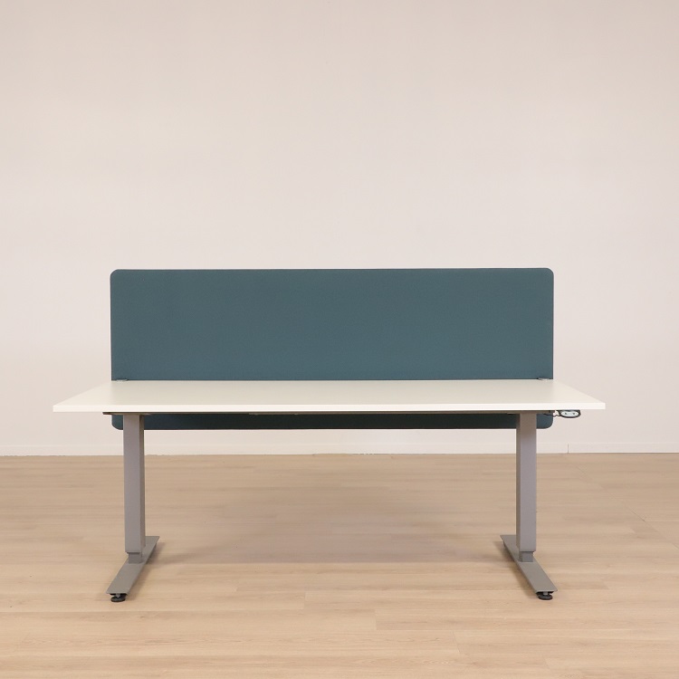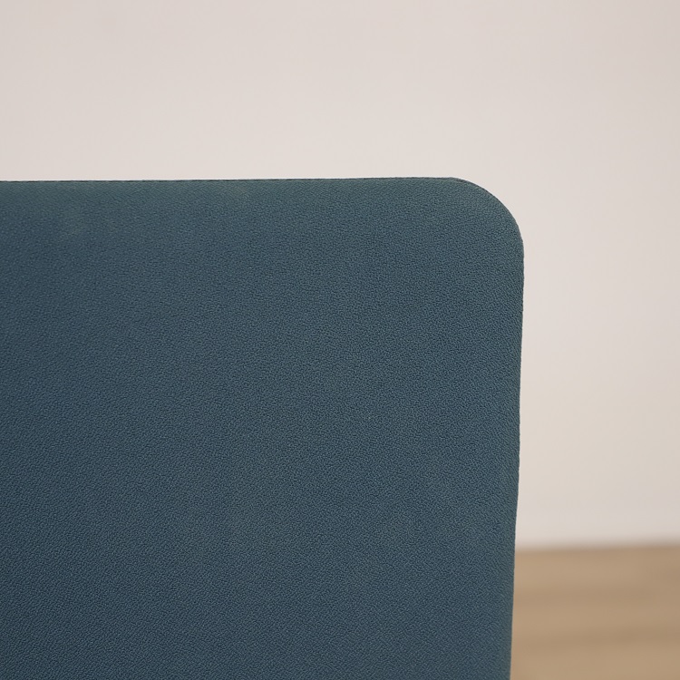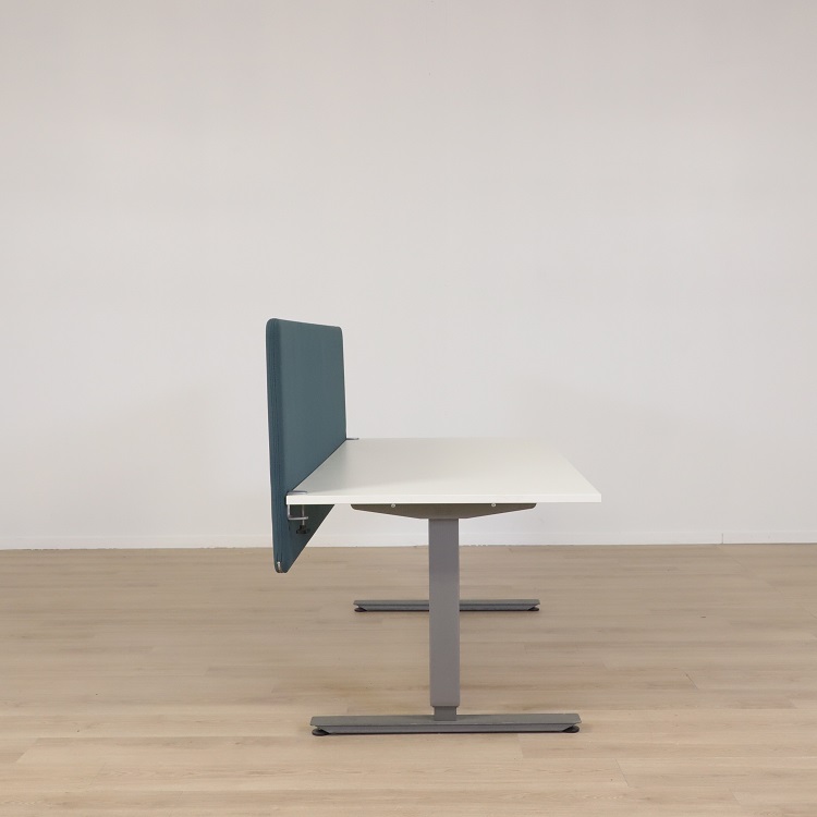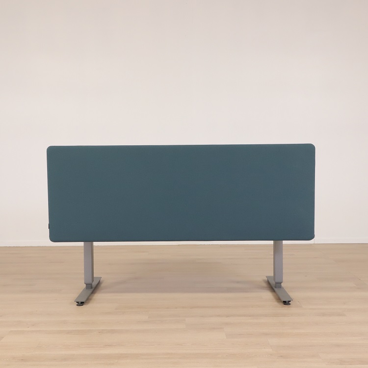 Bordsskärm ScreenIT från Götessons har en mörkblå kulör med grön underton som med sina rundade hörn som ger bordsskärmen sitt mjuka och följsamma uttryck. Bordsskärmen ScreenIT minskar ljudnivån och är även avskärmande från omvärlden. Detta ökar koncentrationsförmågan och arbetsklimatet, perfekt för att optimera effektiviteten på arbetsplatsen. Bordsskärmen har en stomme av 16 mm tjock MDF som täcks av 5 mm tjock skumlaminerat tyg på vardera sida, vilket ger bordsskärmen dess goda ljudabsorberande förmåga.