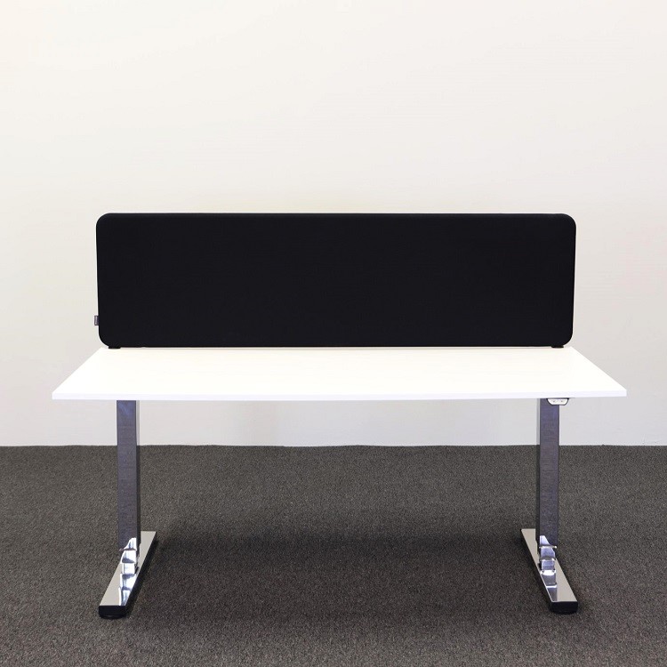 Softline Table är en stilren klassikert till bordsskärm från Abstracta. Här klädd i ett mörkt, gråmelerat tyg alternativt helsvart tyg.