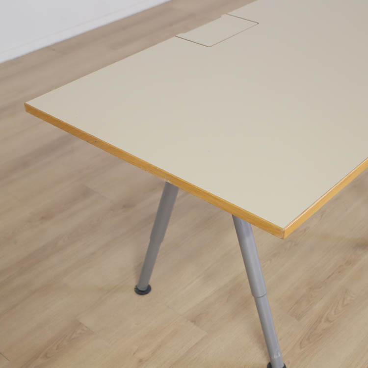 En stilren bordsskiva med elegant träkant som skapar en harmonisk kontrast mellan det moderna och det naturliga. Med en längd på 140 cm erbjuder den gott om utrymme för arbete eller kreativa projekt. Den slitstarka ytan är lätt att rengöra och passar perfekt i både hemmet och på kontoret.