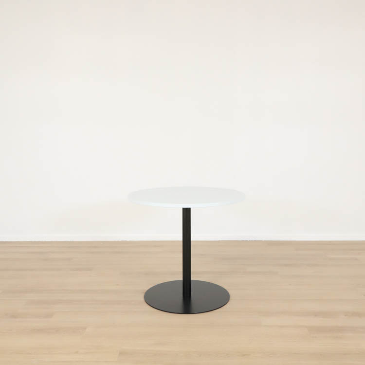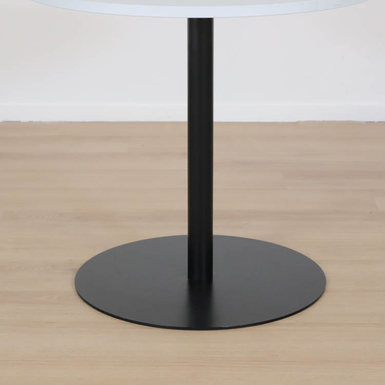 Här presenteras ett cafébord som fångar ögonen och lockar besökare från alla håll. Med en ljusblå skiva och en elegant pelarfot i svart, utstrålar det en oemotståndlig charm och sofistikation.