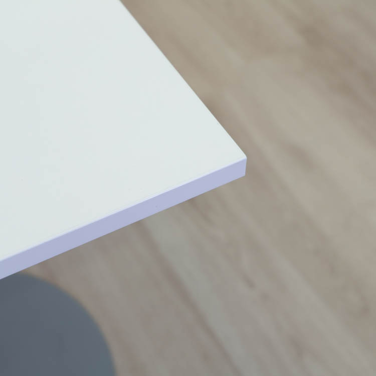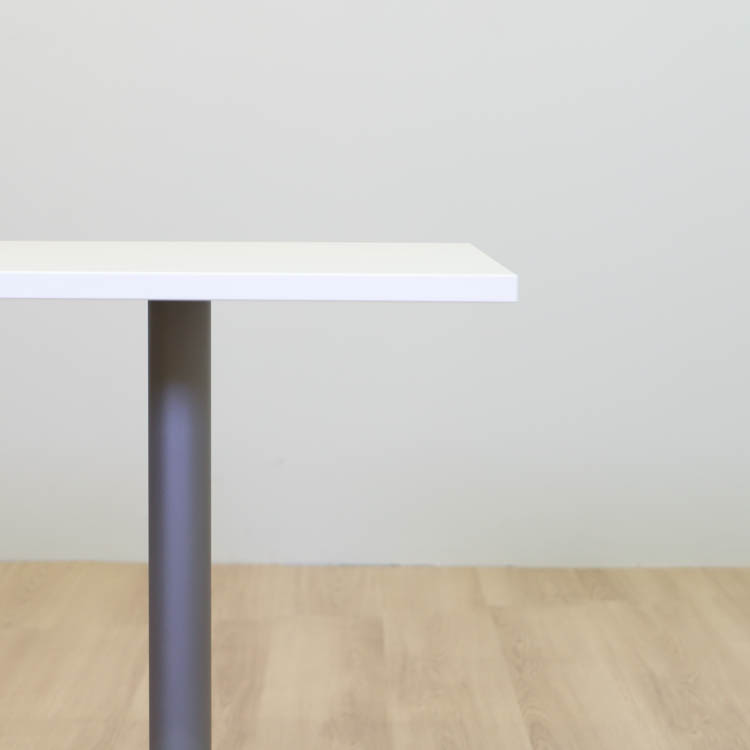 Chat är en stor bordsfamilj av pelarbord som främjar interaktion i gemensamma utrymmen såsom kafeterian, matsalen, mötesrummet, lobbyn eller loungen. Här i vitt med en näst intill kvadratisk form på bordsskivan och rund pelarfot.