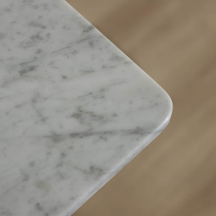 Snyggt litet bord från Edsbyn, modell Feather. Den naturliga marmorstenen på skivan skapar en lyxig yta som är lika praktisk som vacker. Den är även tålig, lätt att rengöra och med unika mönstringar som gör varje bord till ett eget konstverk. I kombination med ett nätt underrede i metall blir det ett perfekt inslag i såväl kök och matsalar som på caféer och mindre restauranger där stil och funktion möts i perfekt balans.