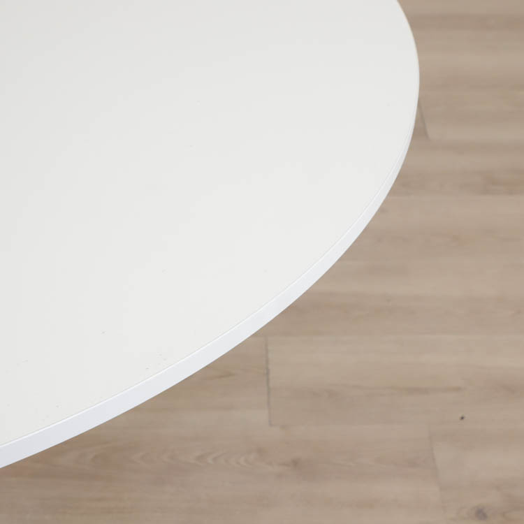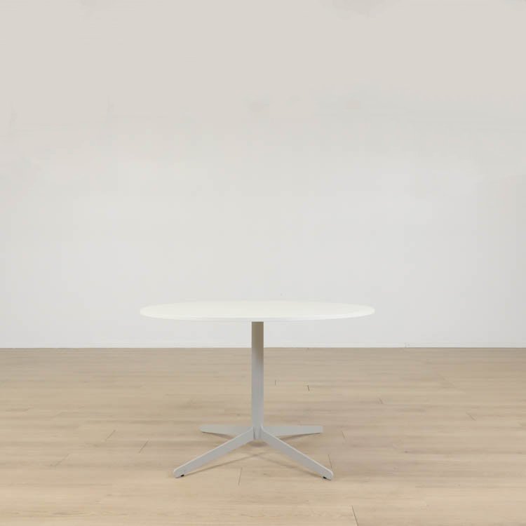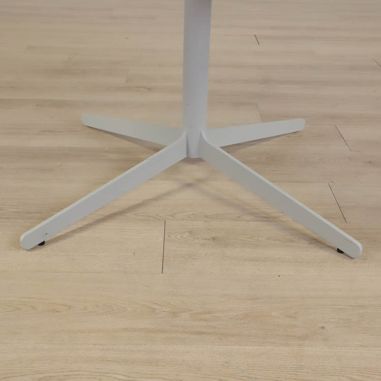 Snyggt och nätt bord från Edsbyn, modell Feather. Bordet har en vit rund bordsskiva med grått underrede, vilket ger bordet ett rent och stilfullt uttryck. Den runda formen ger även en inbjudande och varm atmosfär och passar bra för trängre platser där man önskar det ska kännas mer luftigt. Lämpligt för ändamål som exempelvis mötesbord och fikabord.