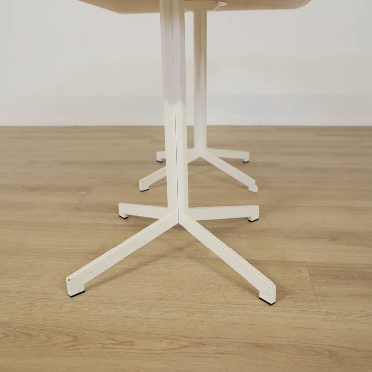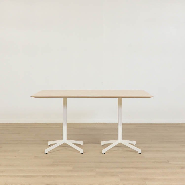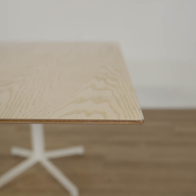 Stadigt cafébord från Johanson Design som gör sig bra i de flesta café- och barmiljöer. Bordet har en yta av ljust trä som ger en naturlig och mjuk känsla. Två raka, vita ben med kryssfot. Design av den svenske formgivaren Alexander Lervik som är känd för sin nytänkande och innovativa design. Du hittar fler bord ur samma serie här!