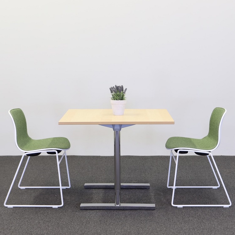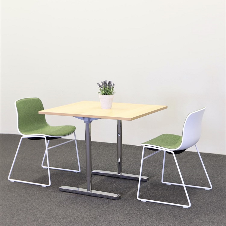 Ett nätt bord som kan användas som såväl cafébord och mötesbord till mindre möten. Detta minimalistiskt designade bord från Martela, som med sitt kromade T-stativ skapar en luftig och rymlig känsla, kan även kan höjas och sänkas manuellt. Bordsskivan i ljust trä ger ett välkomnande och upplyftande intryck tillsammans med de kromade stativbenen i mjuka former.