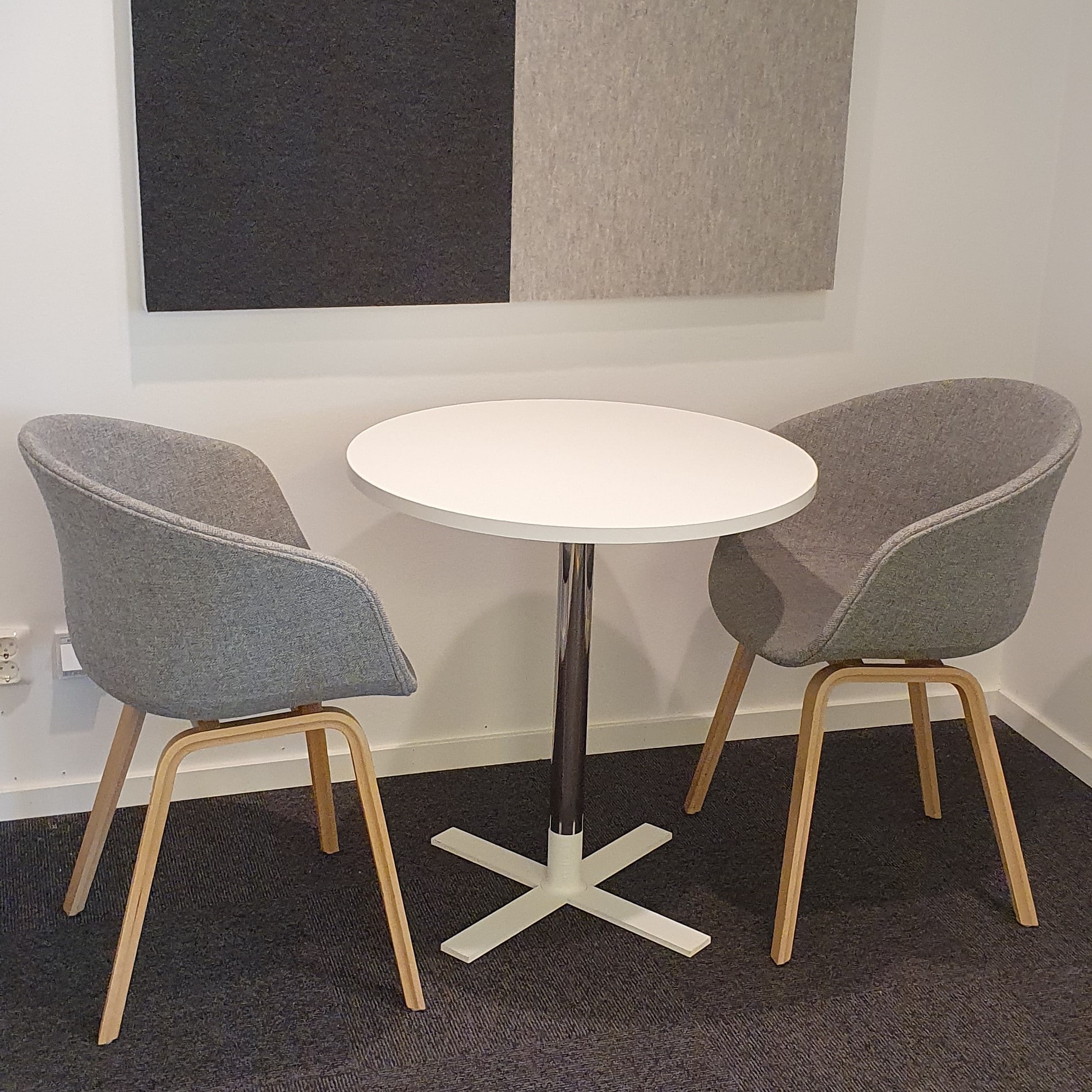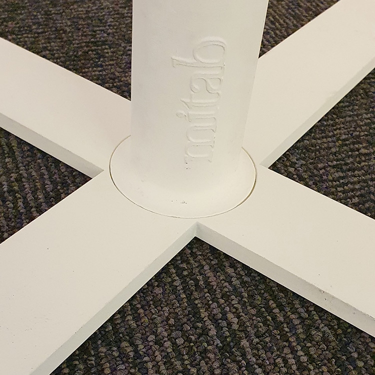 Unit är ett cafébord från Mitab med karaktär men som ändå utan problem smälter in i de flesta miljöer. Den vita så kallade strumpan i reptålig strukturlack gör att bordet passar perfekt i offentliga miljöer, som fikabord eller för det korta mötet. Bordet rymmer plats för 2-3 personer.