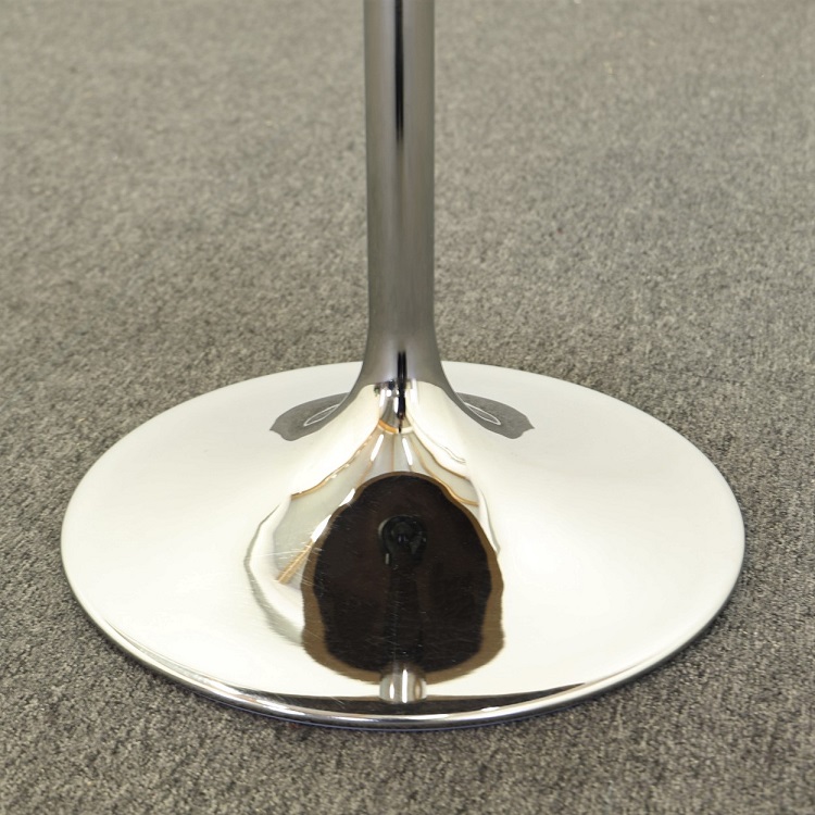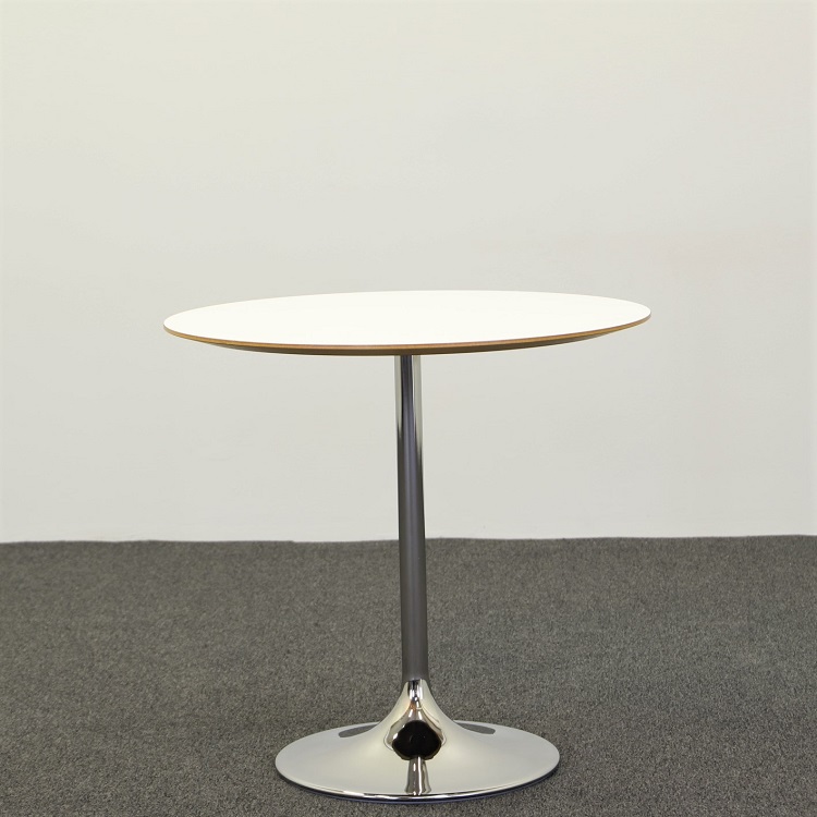 Venus är en riktig designklassiker som de flesta känner igen tack vare sin ikoniska trumpetformade fot i krom. Bordskivan är av vitlaminat med fasad träkant som kompletterar den vita skivan på ett smickrande sätt. Välj mellan två storlekar på bordskivan. Detta bord är Möbelfakta-märkt vilket betyder att möbeln är extra beprövad och uppfyller större krav än standard i hållbarhet, stabilitet samt tillverkningsmetod.