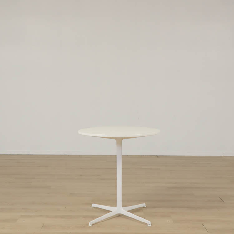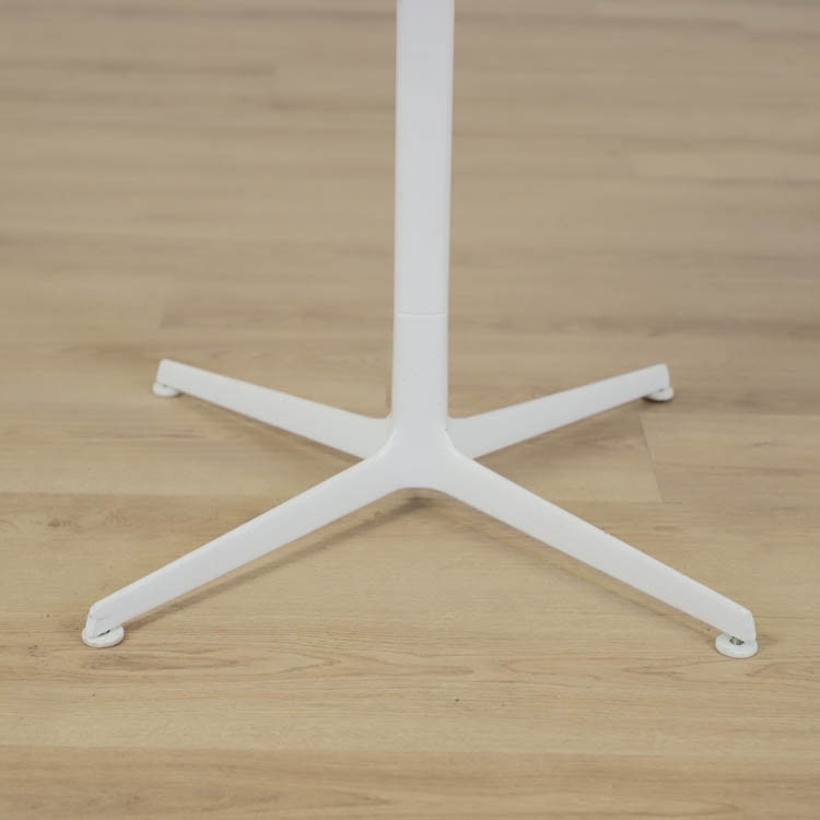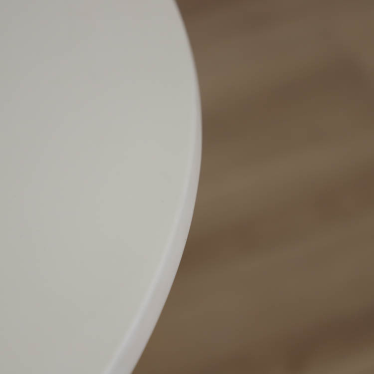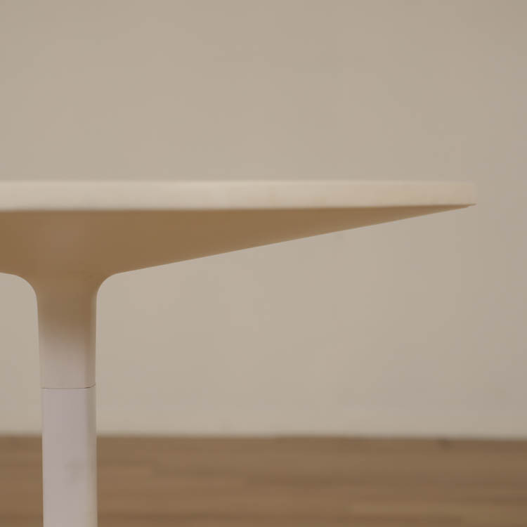 Detta vita runda cafébordet har en enkel och elegant design med en vit bordsskiva som ger ett luftigt och fräscht intryck, vilket gör det enkelt att kombinera med olika typer av stolar.