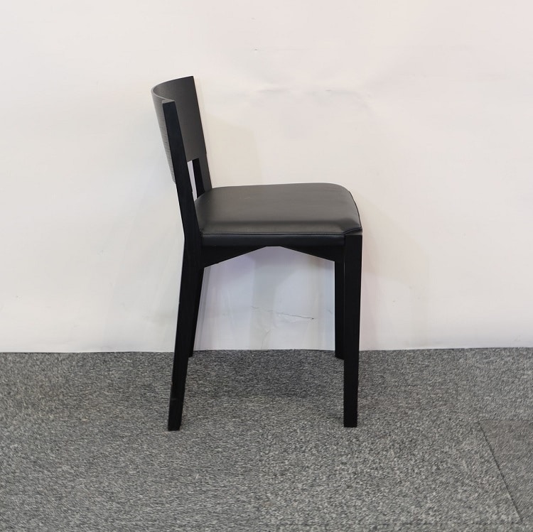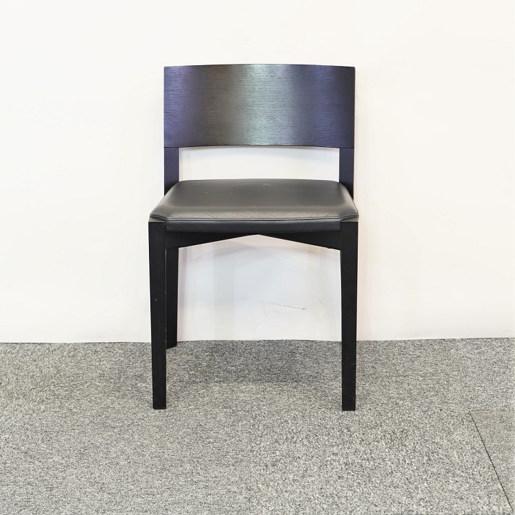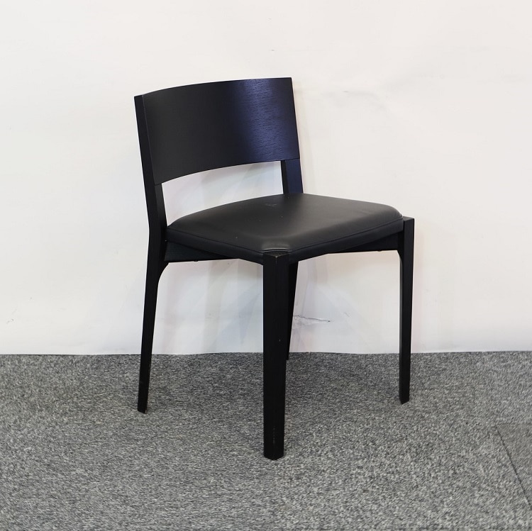 Caféstol i svartbetsad ek med mjuk sits i svart högkvalitativt läder från italienska Porro. Den här stolen har en enkelhet och elegans över sig och utstrålar kvalitet och gediget hantverk från varje vinkel. Passar lika fint i mötesrummet eller till matbordet. Design av Piero Lissoni.