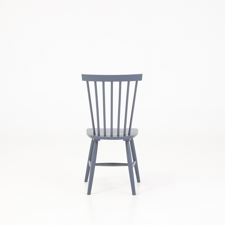 Stolen är tillverkad i trä, vilket gör den hållbar vid daglig användning. Den höga ryggens lätt bakåtlutade vinkel ger bra stöd och komfort. Den generösa sitsen ger ett stabilt sittande, medan det luftiga ryggpartiet bidrar till ett öppet intryck i rummet.