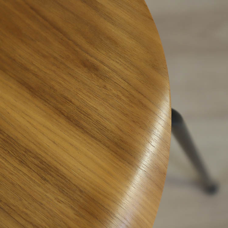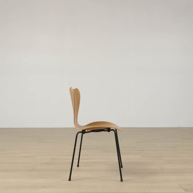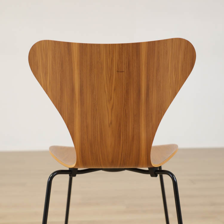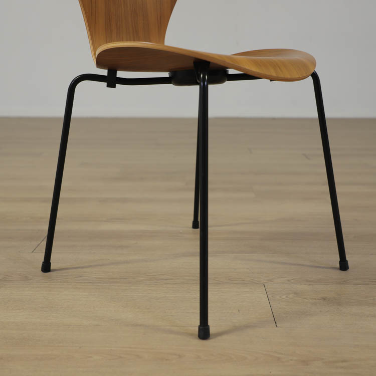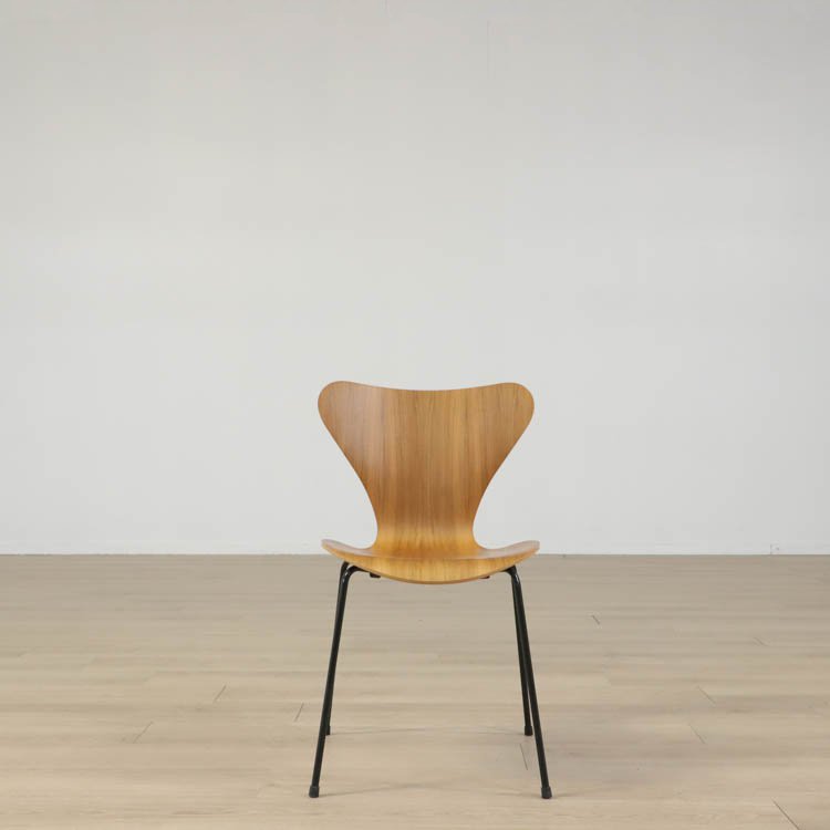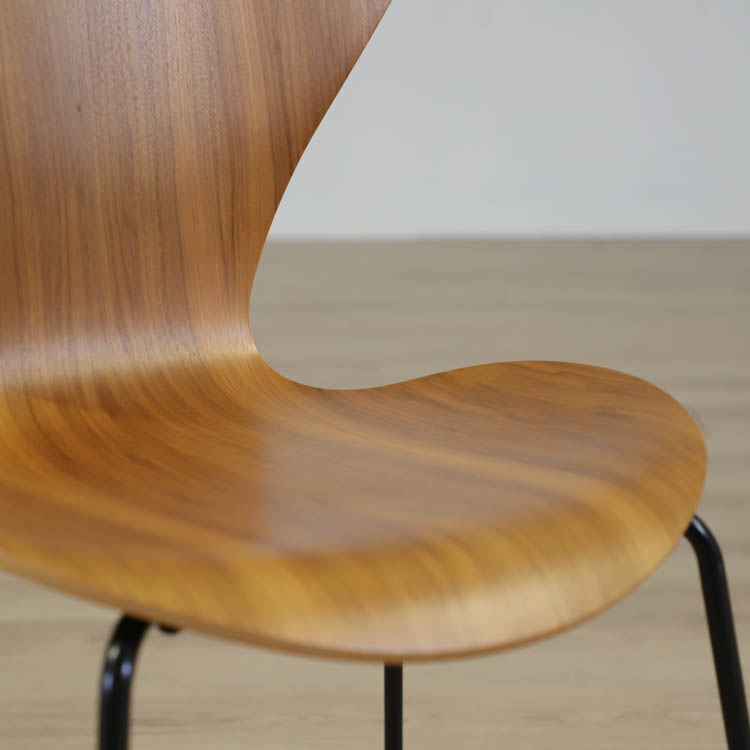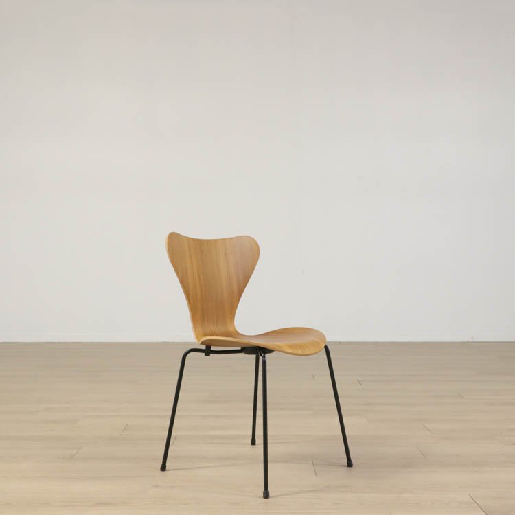 Sjuan 3107, designad av Arne Jacobsen för Fritz Hansen, är en tidlös klassiker som med sin ikoniska form har blivit ett symbol för modern design. Stolen är både lätt och bekväm, vilket gör den perfekt för både privata och offentliga miljöer. Sitsen och ryggstödet på Sjuan 3107 är tillverkade i ett formpressat stycke, bestående av nio lager fanér som har skiktats med två lager indisk bomull och formpressats med ånga. Denna noggrant utformade process har skapat Sjuans tunna och eleganta skal, som ger intrycket av ett sammanhängande trästycke. Ryggstödet är dessutom flexibelt och sviktar, vilket bidrar till den exceptionella komforten.