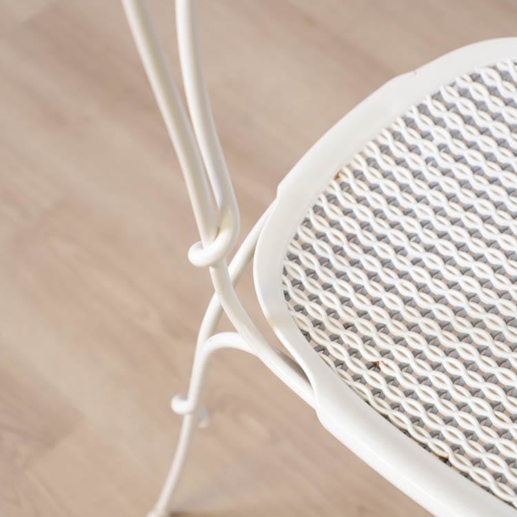 Sitsen är tillverkad av plast och formsprutas med en bi-injektionsteknik, vilket möjliggör skapandet av en stol i flera färgkombinationer, denna i vitt.