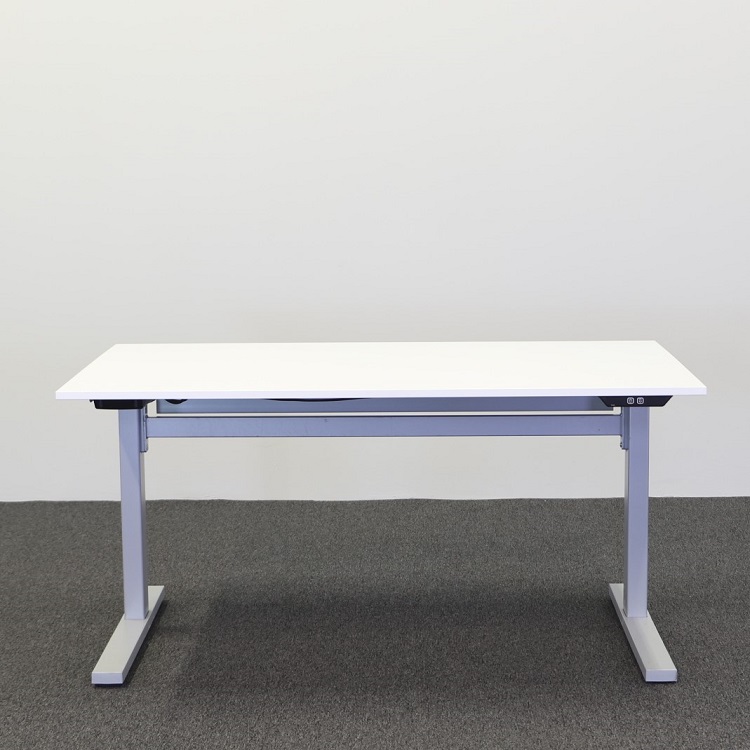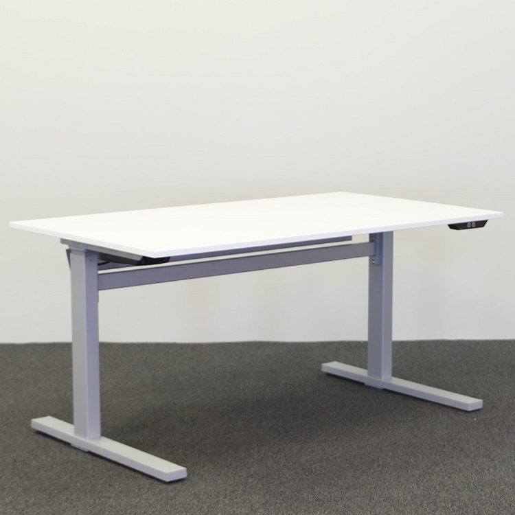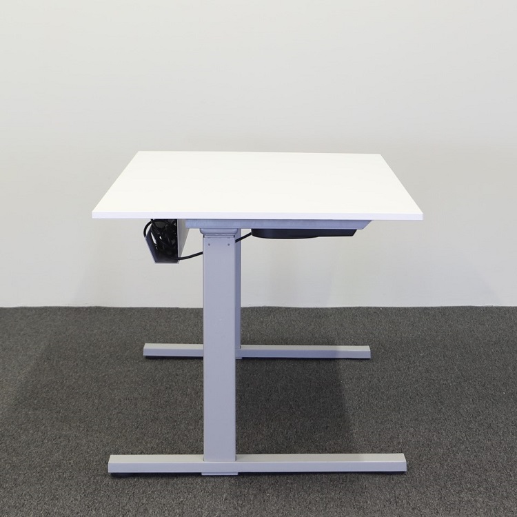 Ett elektriskt höj- och sänkbart skrivbord från det svenska varumärket Ragnars Work. Kommer i mycket hög kvalité med vitt utförande på bordsskivan och ljusgrått stativ. Skrivbordet har raka linjer på såväl bordsskiva som stativ med rektangulära fötter. Skrivbordet är utrustad med kabelkorg i bordsskivans bakre kant för att smidigt kunna hålla undan kablar från arbetsyta och golv. Stativets slaglängd passar att arbeta vid i stående och sittande position för många, beroende på den individuella, optimala höjden för stående arbete. Skrivbordets enkla design med tidlöst utförande placeras väl i alla kontorsmiljöer och hemmakontor.