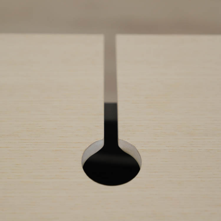 De stilrena trädetaljerna ger skrivbordet ett naturligt och tidlöst utseende, samtidigt som den robusta konstruktionen säkerställer stabilitet och hållbarhet. På bordskivans mitt baktill är det stilrent utfräst för kabelgenomföring. Detta gör det enklare att organisera sladdar och hålla skrivbordet städat. Bordet i måttet 117×80 cm har även en utdragbar hållare undertill.