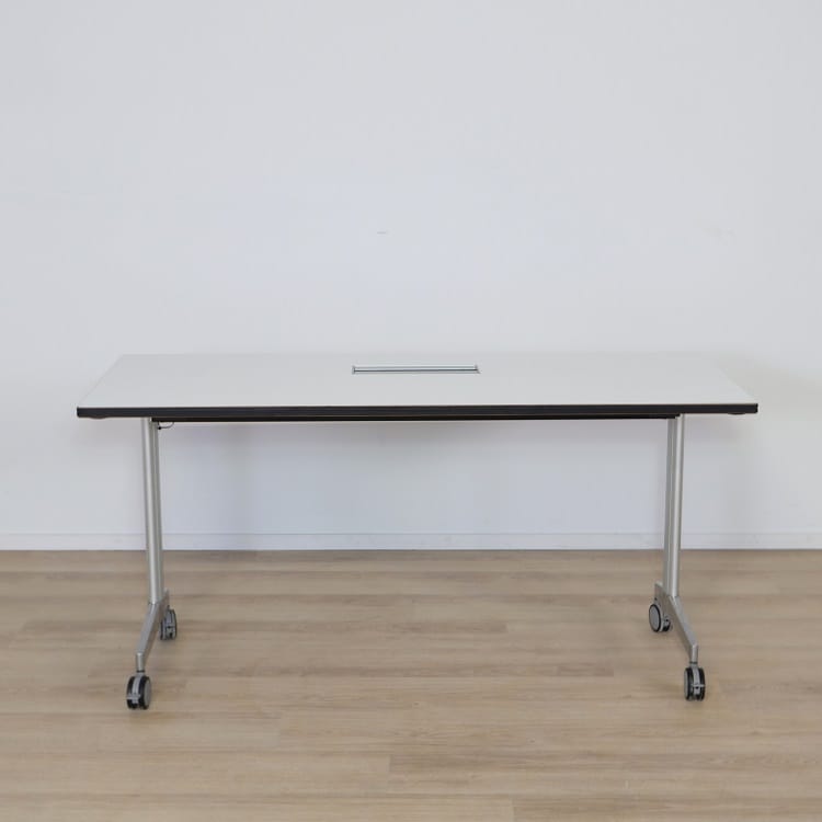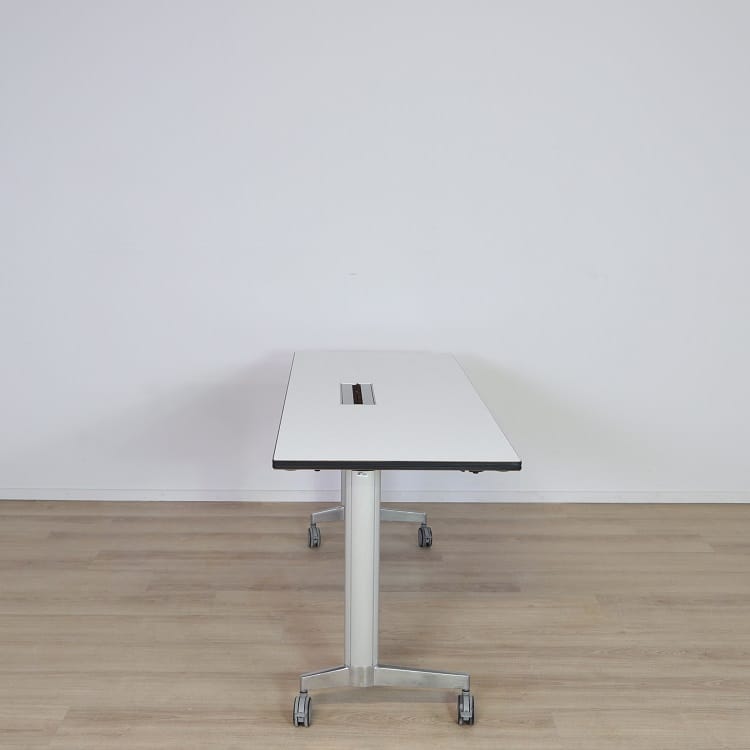 Fällbordet Moveo från Howe är ett mobilt fällbord som gör sig utmärkt för möten, konferenser eller flexibla arbetsplatser. Bordet har ett grått stativ med kromade fötter som tillsammans med den fällbara bordsskivan i vitt med svart kantlist ger bordet sitt djärva men stilrulla uttryck. Bordsskivan är utrustad med kabellucka för optimerad kabelhantering.