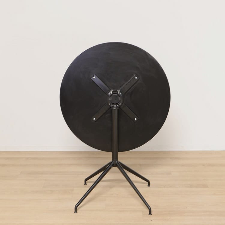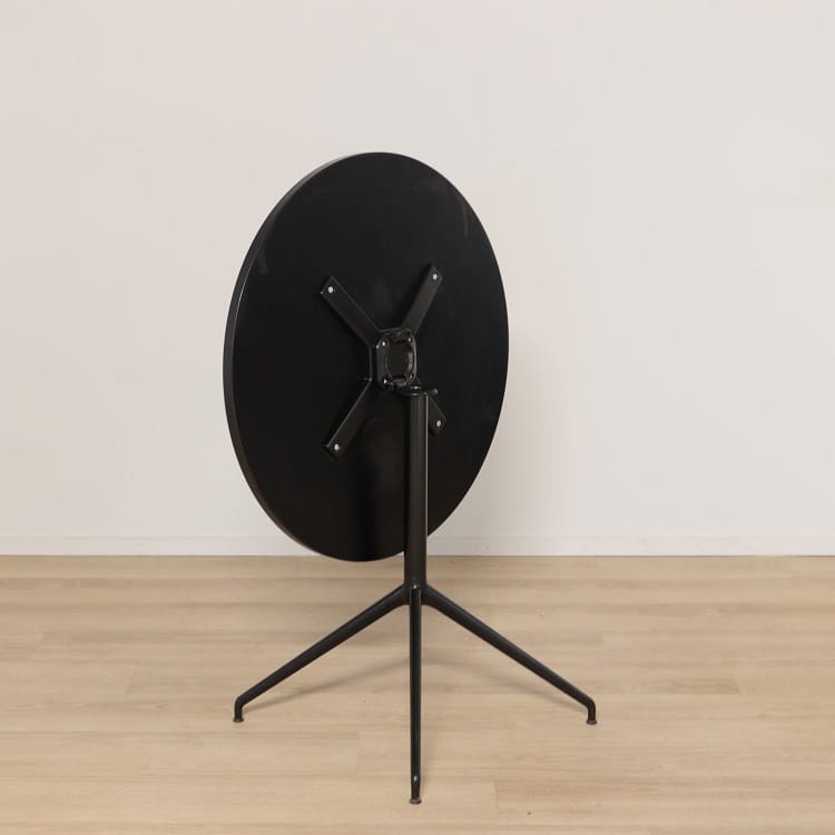 Helsvart fällbord är den perfekta kombinationen av tidlös estetik och funktionalitet. Bordet har i det närmaste en organisk utformning vilket gör det mångsidigt och enkelt att kombinera med stolar efter egen smak och tycke. Dess mjukt formade ben tillsammans med den runda bordsskivan ger bordet ett inbjudande uttryck trots sin djärva kulör. Stativets utformning som är gjord i aluminium ger bordet god stabilitet och hållbarhet.