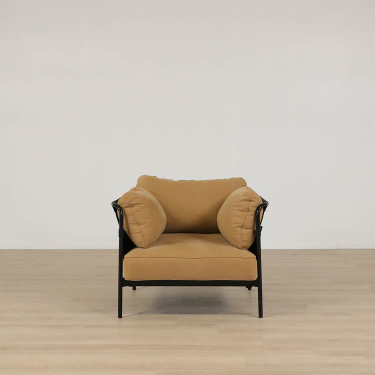 Can-fåtöljen från Hay är en modern och innovativ sittmöbel som utmanar traditionella designnormer. Designad av bröderna Ronan och Erwan Bouroullec. Den mjuka sitsen och ryggstödet erbjuder hög komfort, medan den robusta stålramen ger hållbarhet och stabilitet. Med sina rena linjer och subtila färgval i varmbrunt passar Can perfekt i rum inredda av den stilmedvetna.
