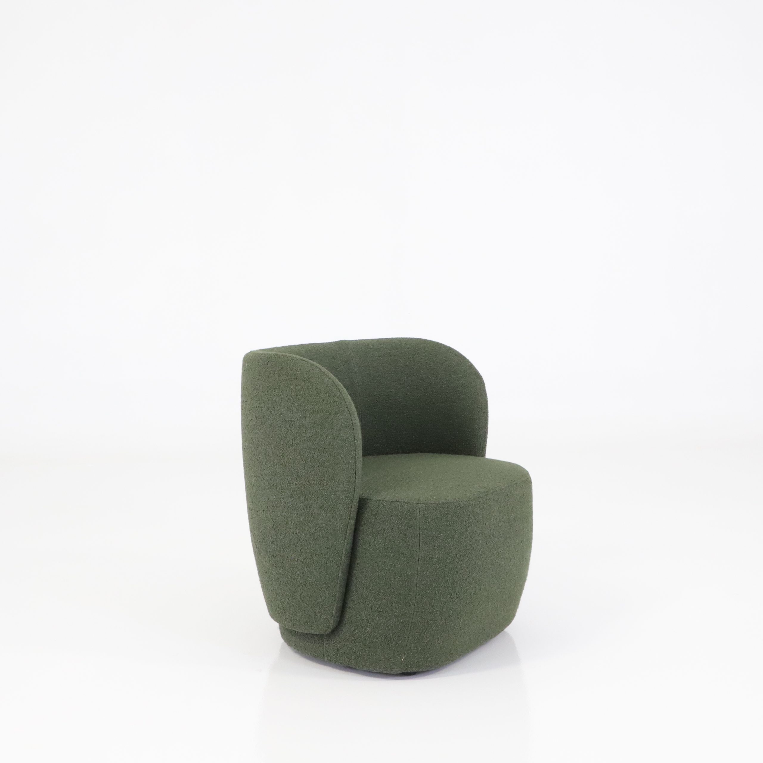 Fåtöljen är tillverkad med omsorg i hållbart och naturtroget material. Den gröna klädseln ger Cap möjligheten att enkelt smälta in eller sticka ut i inredningen.