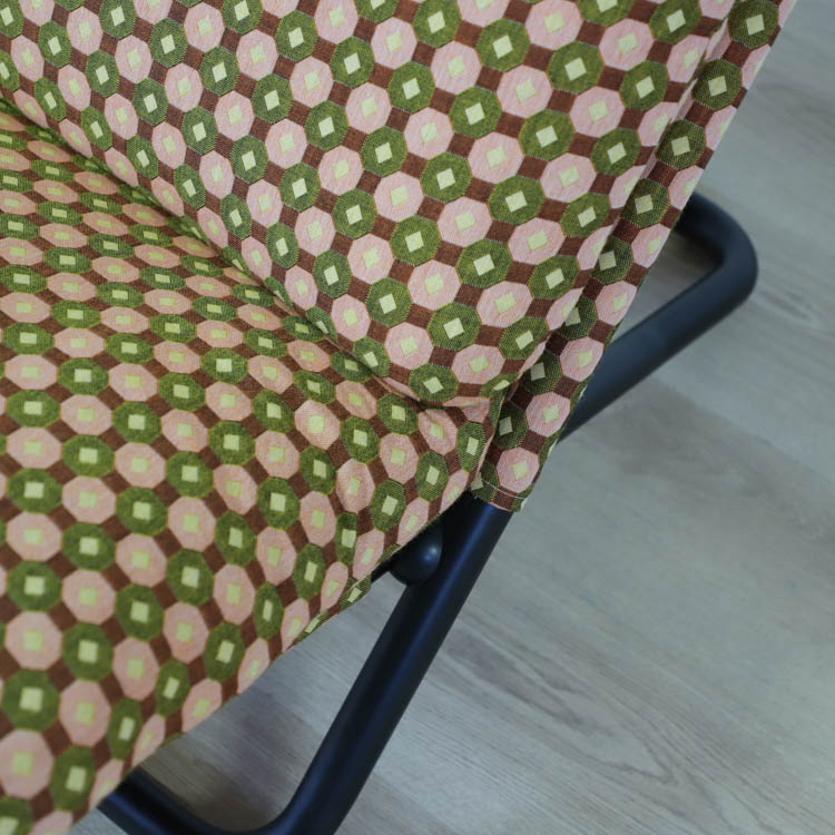 Designen bakom Cross Low utstrålar en minimalistisk elegans som lätt smälter in i olika interiörer, oavsett om det gäller ett modernt hem eller ett stilrent kontor. Den har en robust metallram som ger ett starkt stöd, samtidigt som den mjuka stoppningen i sitsen och ryggstödet skapar en bekväm sittupplevelse. Här klädd i ett lekfullt mönster som både sticker ut i mängden och fångar din uppmärksamhet.
