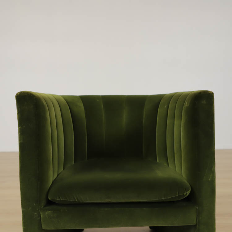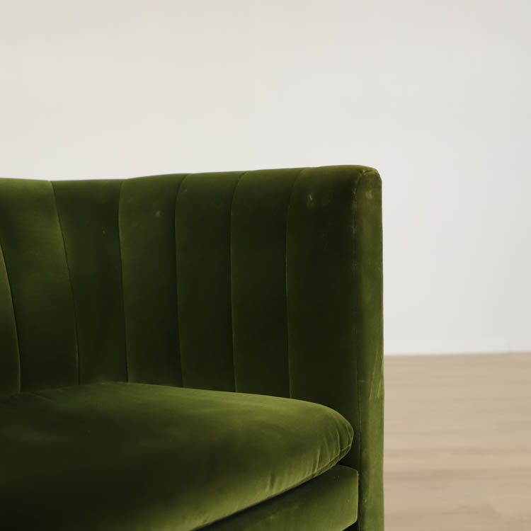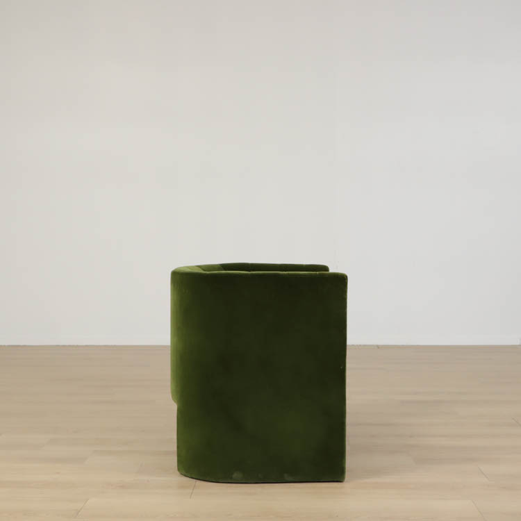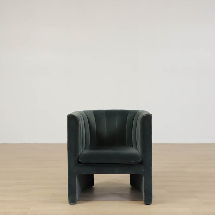 Med sin rundade rygg och mjuka stoppning bjuder Loafer Lounge Chair in till avslappning och reflektion. Den kompakta storleken gör den enkel att placera, vare sig det är i ett vardagsrum, ett sovrum eller en hotellobby. Stommen är tillverkad av massiv bok och plywood, klädd med ett högkvalitativt sammetstyg.
