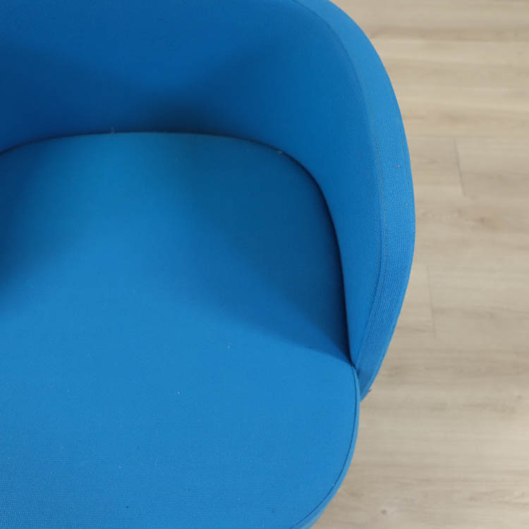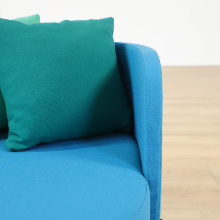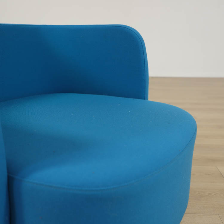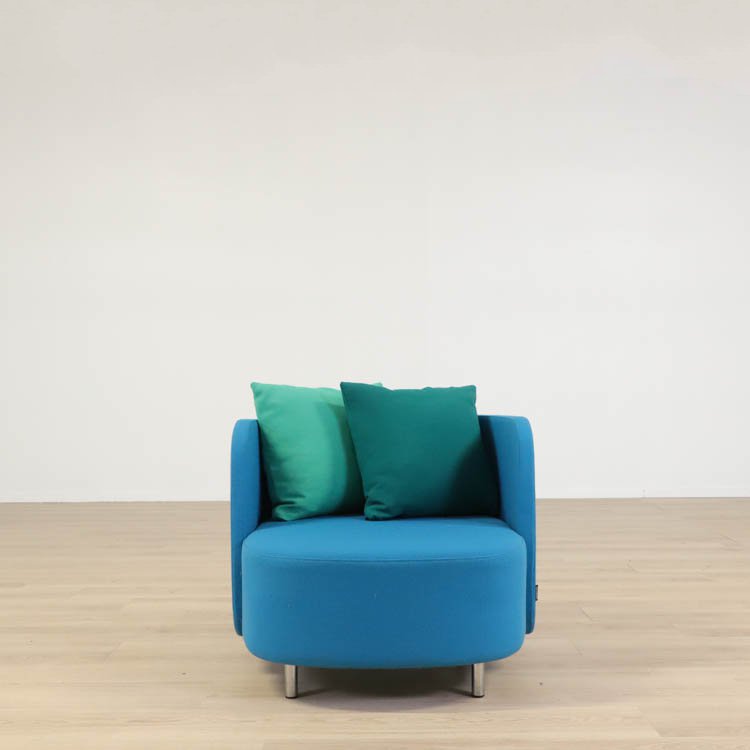 Fåtöljen Minima från Offecct är formgiven av Claesson Koivisto Rune är en svensk design- och arkitektbyrå, grundad 1995 av Mårten Claesson, Eero Koivisto och Ola Rune. Den är känd för att kombinera arkitektur och produktdesign på ett integrerat och holistiskt sätt. Trion arbetar med allt från inredningsarkitektur och möbeldesign till stora byggnader, och de har blivit internationellt erkända för sin minimalistiska, eleganta och funktionella design, ofta inspirerad av skandinaviska designtraditioner. Detta kan beskådas tydligt i Minimas formspråk. Fåtöljens runda form med dess generösa sittutrymme ger en inbjudande känsla i rummet den placeras. Detta utförande i en färgrik blå kulör. Kuddarna som visas på bilden matchas väl och medföljer vid köpet.