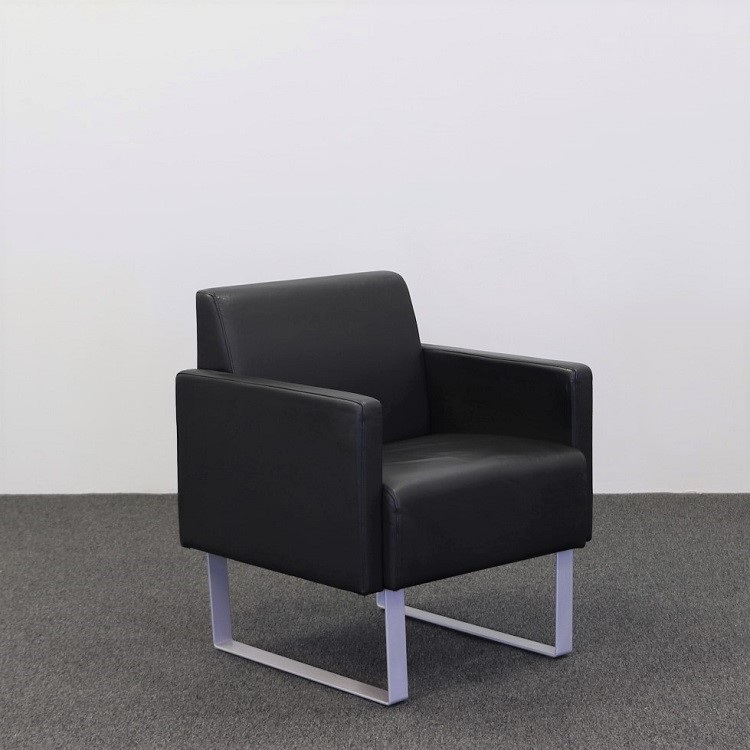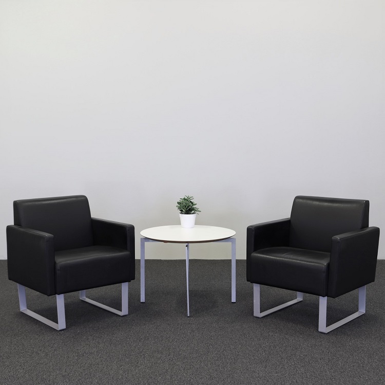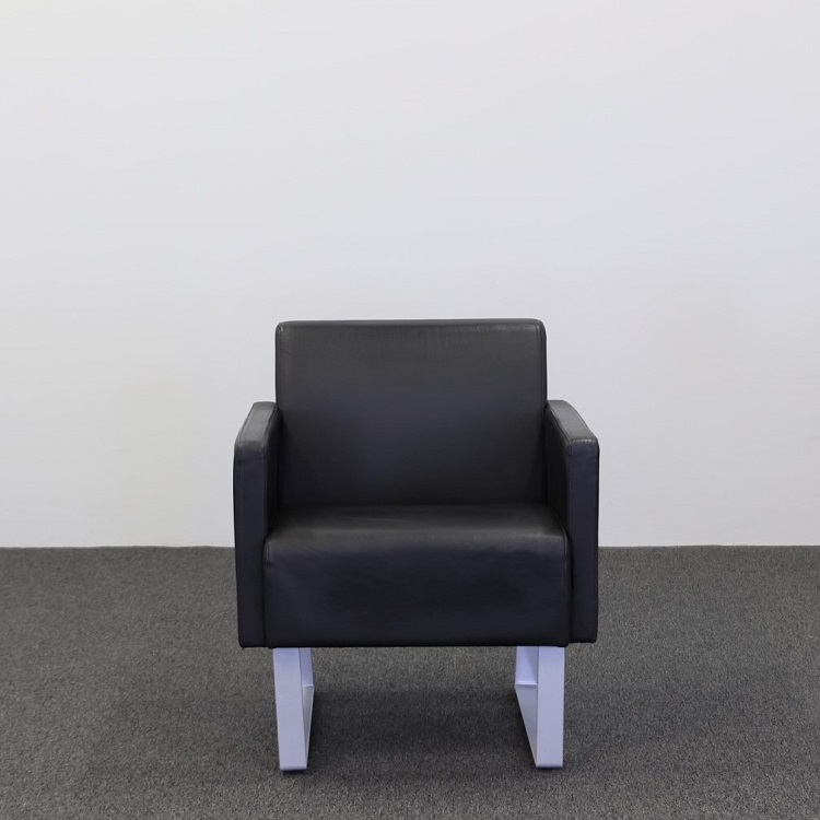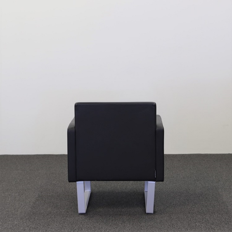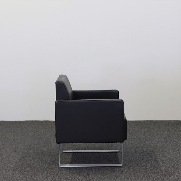 Monolite är fåtöljen som passar utmärkt i de flesta utrymmen, så som personalmatsalen eller väntrummet eftersom det mindre sittdjupet och högre sitthöjden erbjuder ett mer upprätt sittande. Den har en öppen utformning mellan sits och rygg som gör fåtöljen lätt att hålla ren. Här i ett snyggt utförande med stilig läderklädsel och stilrena grå medar.